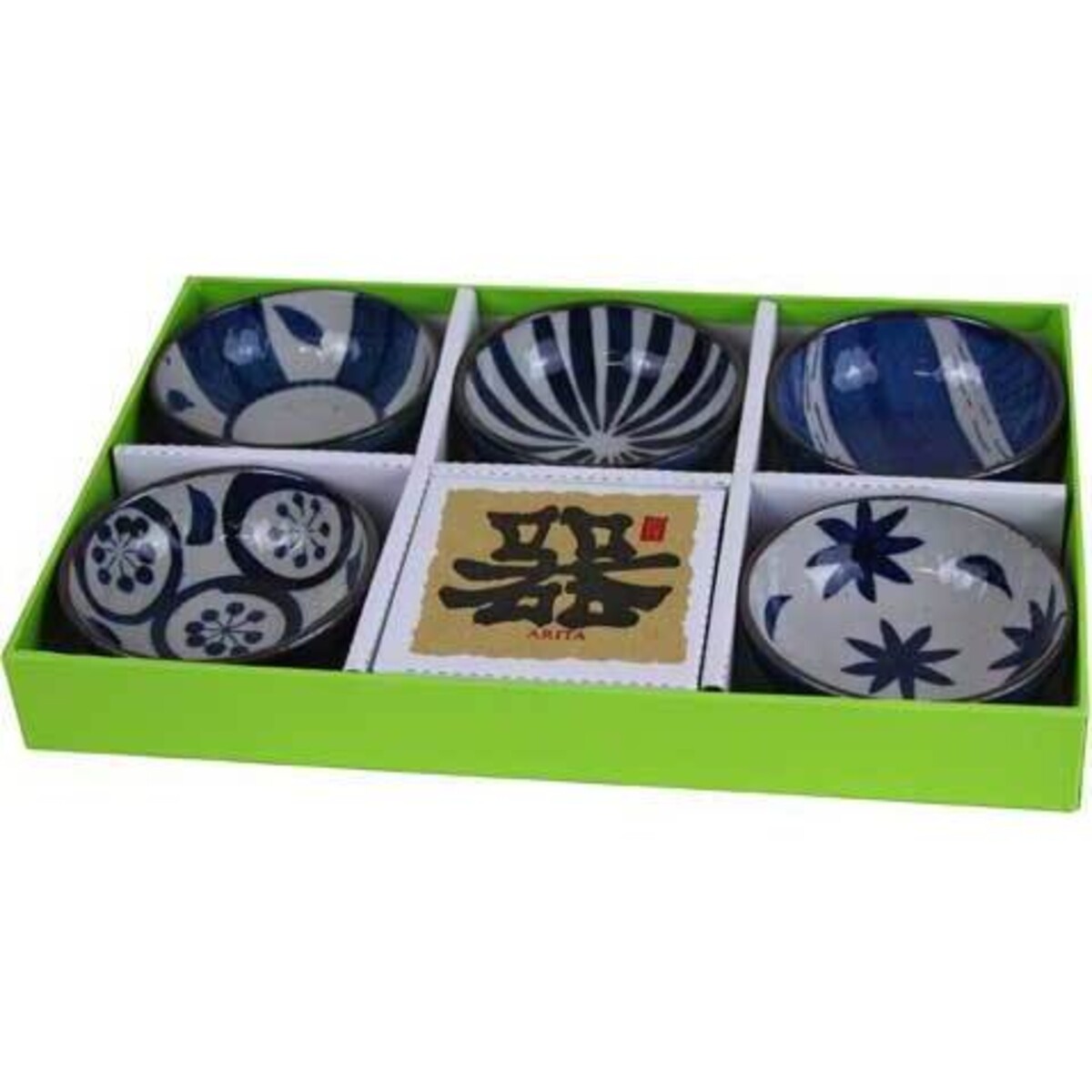 Bowl Japan Style Band S/5 features a set of five colourful bowls, each measuring 9x9x3.5 cm. They are constructed using ceramic material and exhibit colourful bands of blue and white in distinct pattern for each piece. All of them would grace the dining table in stylish manner, whether serving guests or family at home or a large number of invites at a ball. The bowls come packaged presentably and are their ceramic nature makes them rather delicate items which should be handled with care. Whatever the application Bowl Japan Style Band S/5 is an outstanding set of kitchenware for many occasions.