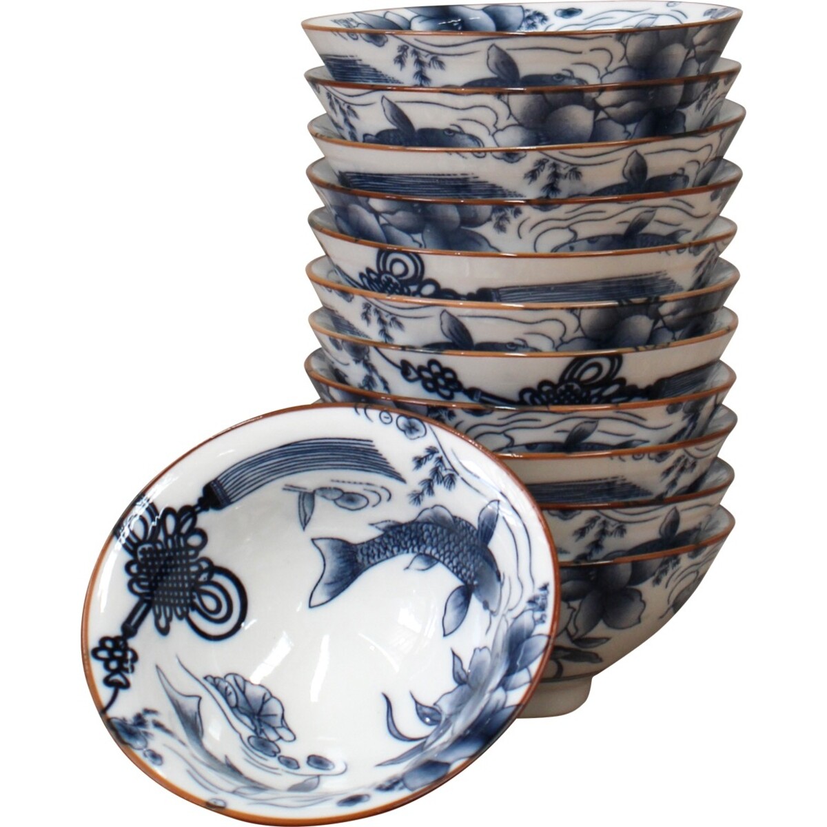 Koi or carp in Japanese is what makes this delightful rice bowl such a pleasure to display and use in the dining room or the kitchen. Made from high quality ceramic it enhances the oriental appeal in case you are wanting to create one or if you wish to serve up some oriental or Chinese food, this bowl could be one sure way of getting the look of the setting right. The smooth contoured bowl is all of 4.5 cm in height with a curved diameter of 8.5 cm. The tiny round base on which it balances beautifully gives way to a brown edged rim that enhances the delicate beauty of the design all over the pristine whiteness of the bowl. Simply pour in some water and place a floating candle in it or use it for sauces and dips or serve up something else - in whichever way you desire, this is the kind of bowl that will render your spaces a more defined oriental feel. The fine sheen of well - crafted ceramic is needed its most important usp.