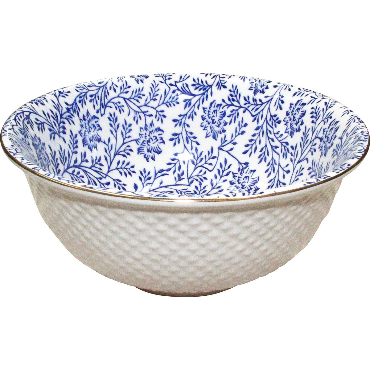 Make a difference to the manner in which you serve up in great style each day or when the occasion is special-with a superb set of high glaze porcelains et on offer from Lavida, it should be quiet a simple style update made from a material that needs the right crafting technique, this fern blue print bowl is delicately dimpled on the outside and this textured look gets evenly balanced with the printed in blue inside. The colour and print will hold its magic despite much usage the vivid blue print looks most charming on white and the golden edge of the bowl, adds to its delicate classic appeal. Add this to your collection of serve ware and see an elegant impact to your table setting. Fine quality porcelain of this nature is of offer in the same pattern and colour in a set on Lavida. Time to go for a style check by adding more to the way your meal time looks and feels. The below is all of 16.5 cm in diameter and 7.5 cm in depth and sits on its small round base much well balanced.