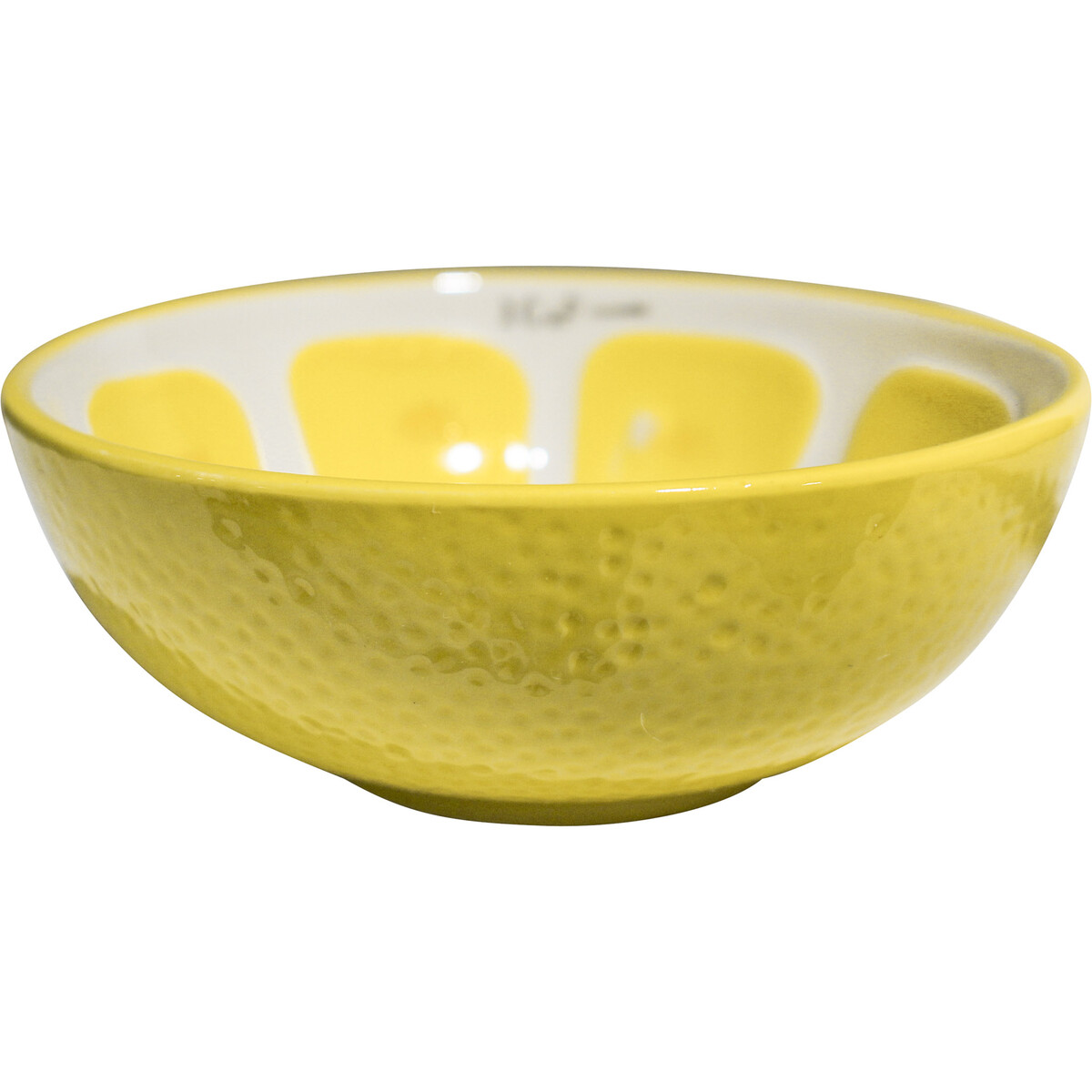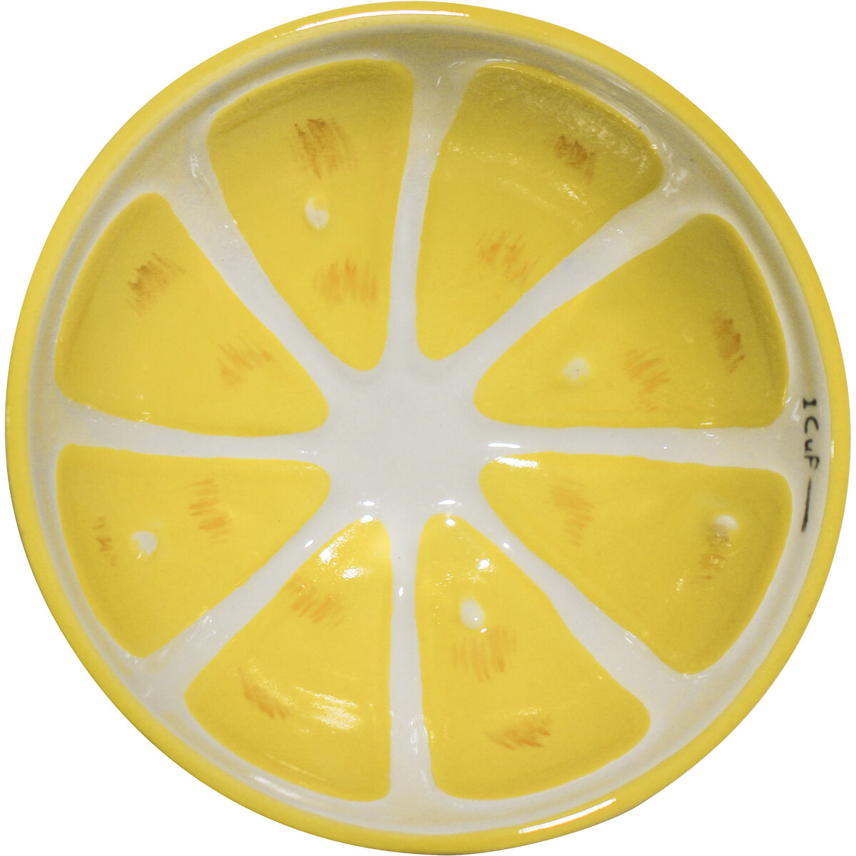 This ceramic bowl is a masterpiece! It is characterized by bright yellow segments in the center which make up most of the design with white edges. The lemon-like exterior has been exquisitely finished with perfect details creating an authentic replica of a lemon. This fruit-inspired plate has other dinner sets that add to the beauty of one's kitchen. This lovely round plate gives a nice touch of charm and flavour to modern and minimalist spaces. It is also very convenient for serving full meals, snacks, appetizers, and desserts. Bowl Lemon Slice is ideal for use in large gatherings, as a centrepiece on the table or just to enjoy every day. It's a stunning dishware piece that homeowners can proudly showcase when they host any event, be it a big party or an intimate family gathering.