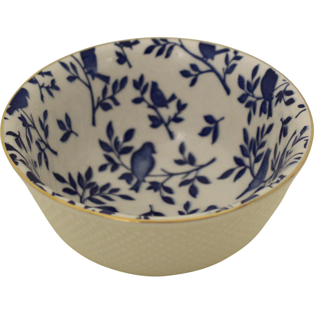 Crafted in fine porcelain, this medium sized bowl brings the beauty of the outdoors into the contemporary interior of a home. Inspired by nature, its design features a white backdrop with dark blue paintings of a bird perched on a branch, a light yellow rim and a white textured exterior. This wonderful design will never go out of style and will have you thinking of spring all year long!