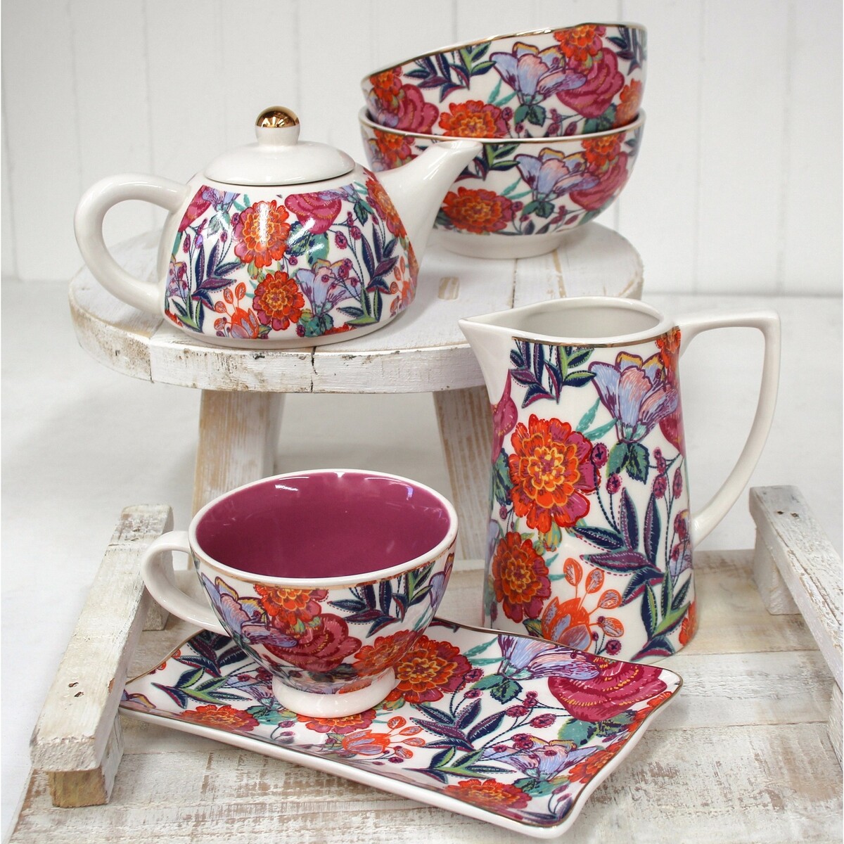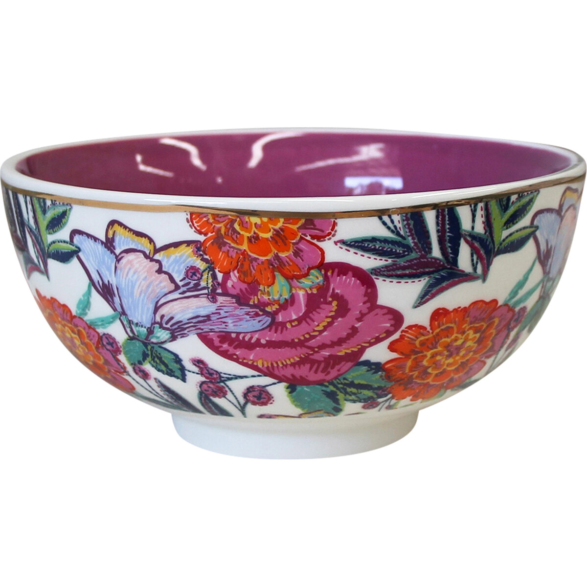 The tapestry pattern characterizes a collection of light tones and dark tones, floral patterns, and subtle concrete texture that explores retro flower designs in new and exciting ways. The flowery themed design looks like a piece of artwork. More or less an embroidery, cross-stitches, hand-painted, beadwork, or needlework. Tapestry trends and its all-glorious appeal have flaunted their way into home d?ɩcor. This bowl and the rest of its collection is a must-have for every home. Use Bowl Vintage Tapestry as an antique bowl to adorn walls or a traditional ambience on the window sill to enhance the decoration of one's space.