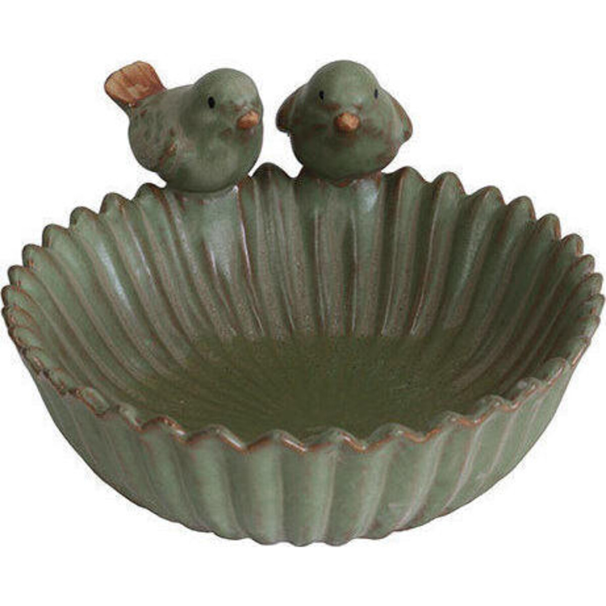 Add the touch of delicate grey ceramic to your ta el accessory and use this bowel to serve anything from salads to gravies - here is a wonderful new look given to ceramic which follows the antique pathway to modernity. The grey coloured bowl rises up like flower blooming. Each of its rides like petals opening up. The colour of course makes its look all the more special - muted yet dramatic enough to throw into relief the gorgeous elaborate design of the structure itself. The two tiny birds have grey bodies and pink beaks with complimenting the colour of the bowl and seem to be peering into it wondering if they could get a peek at what was being served. The scalloped edges have tinge of pink colour and make the design seem all the more special. The bowl has a diameter of 16 cm while its depth is all of 9 cm, making it large enough for serving a variety of things. And impressive addition to your table if earthy ceramic ware is how you wish to create your naturally appealing table setting.