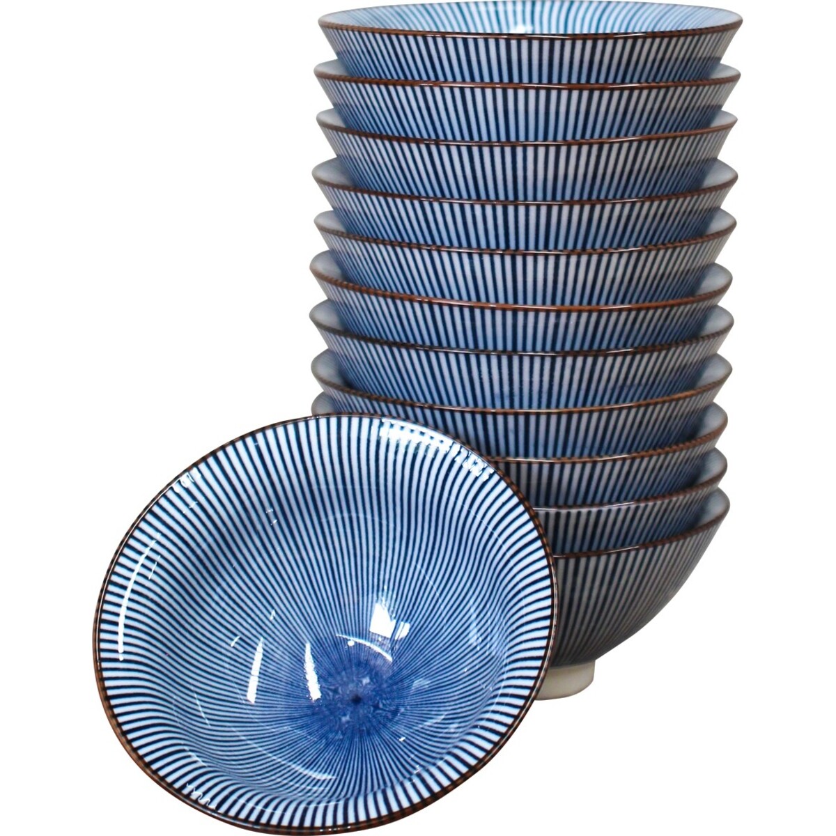 The mark of great ceramic is the fine kind of quality that can be seen in its beautiful snoot sheen and the manner in which the piece ahs been finished in terms of its smooth look and glaze as well as the way the caky has been moulded to a fine quality shape and the Jappa bowl is one such piece. Add it to your serve ware as its 8 cm diameter and 3 cm tiny base gifts it a gorgeous elegant shape. The linear patter in deep indigo reflects the best in colour combination while the sheen in the form of the glaze on its body speaks of the traditional firing that has been given to the piece. You could use it for serving finger foods and the likes or serve soups and curries and sauces. The oriental feel of the bowl is quite evident in its beautiful smooth and eclectic design.