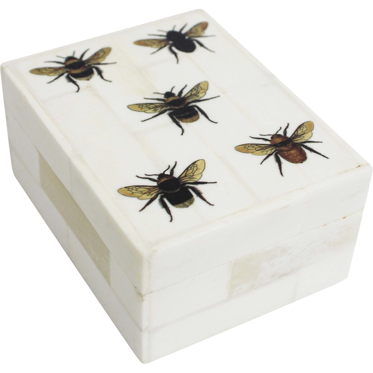 Introducing the Box Bee, a beautifully handcrafted accessory that is sure to become a favourite among your customers. Measuring at 10.16 x 7.62 x 5.08 cm, this exquisite box is made from ethically sourced bone and MDF, showcasing a delightful array of bees that evoke a sense of charm and nature. Each piece is unique due to the natural materials used, ensuring that no two boxes are alike—truly a testament to artisanal craftsmanship.