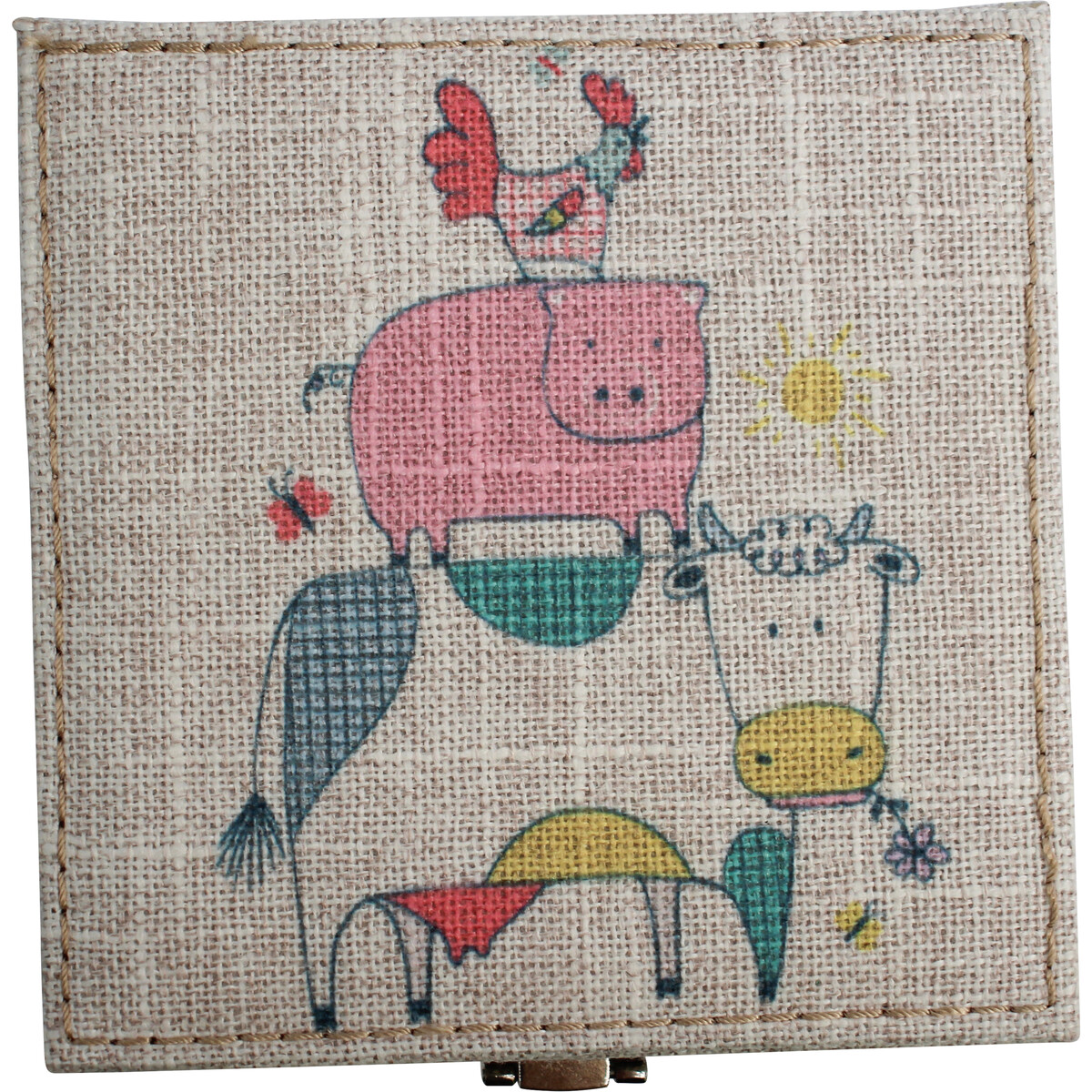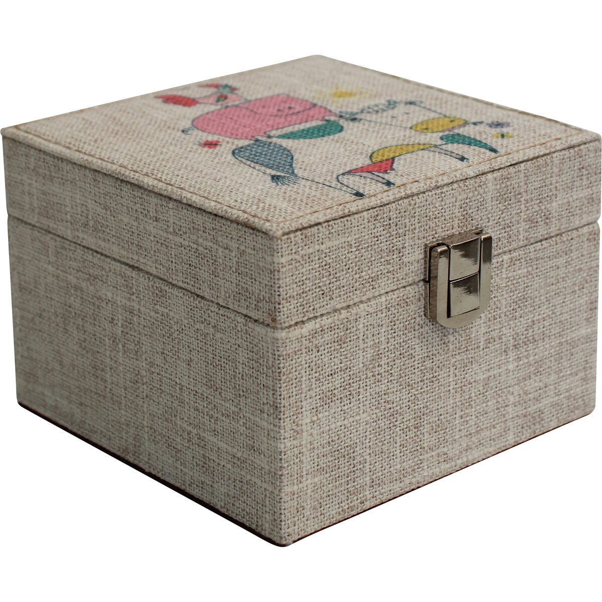Organizers and boxes that can hold your precious little treasures are always a necessity - especially if you like to keep those innumerable keepsakes, trinkets and little memorabilia, in a safe place. This box has a single compartment with a length of 13 cm, a width of 12 cm and depth of 8.5 cm, making this large enough for several of your little treasures. The MDF body gives it strength while the linen over with its adorable country friends on top, makes it a such a great way of making your table top look attractive would make a lively gift for a child just starting out on a collection of her own.