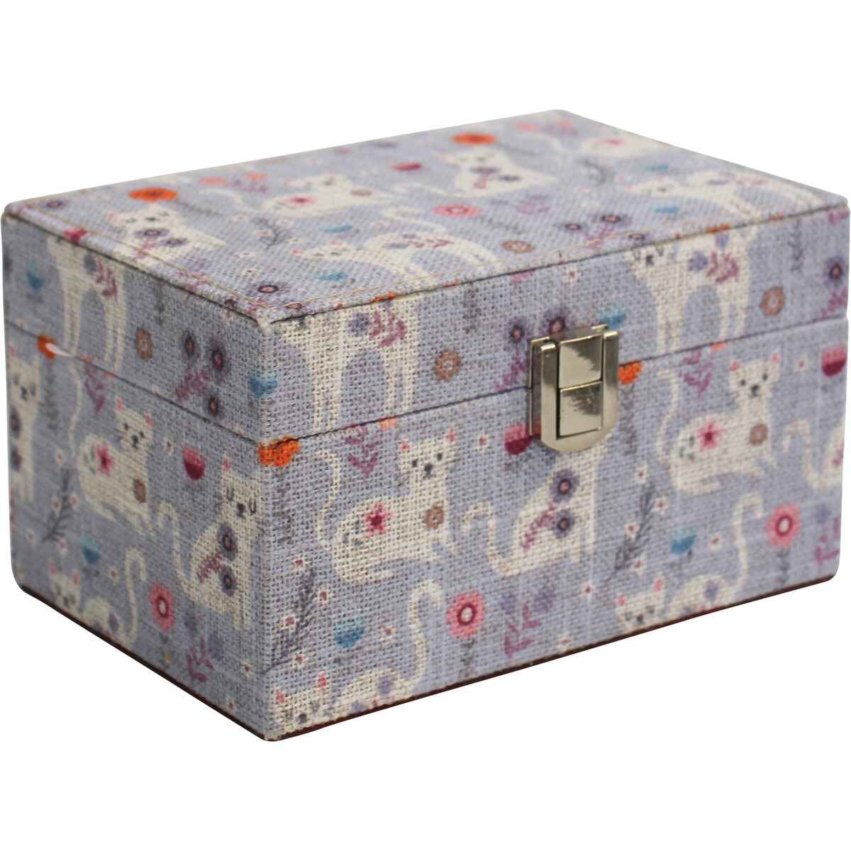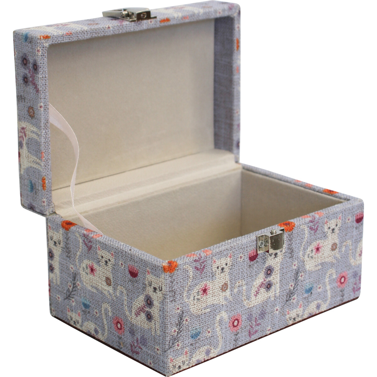When it comes to keeping your small possession, what could be better than a solid box that will store all your little treasures that tend to be damaged lying around or too open to prying hands and fingers. Make your dresser top look extra special with this delightful little case crafted from MDF and covered in printed linen for that extra touch of elegance. The latch will firmly shut the lid that opens smoothly and is held aloft without falling backwards with its ribbon anchor. The size of the box makes it the kind that you could carry with ease on your travels or keep it atop any table. The simple single compartment case is a great means to give your trinket collection a safe storage. All of 15 cm in length and 10 cm in width, it's a compact and delightful little piece that blends a modern chic look with practical functionality.