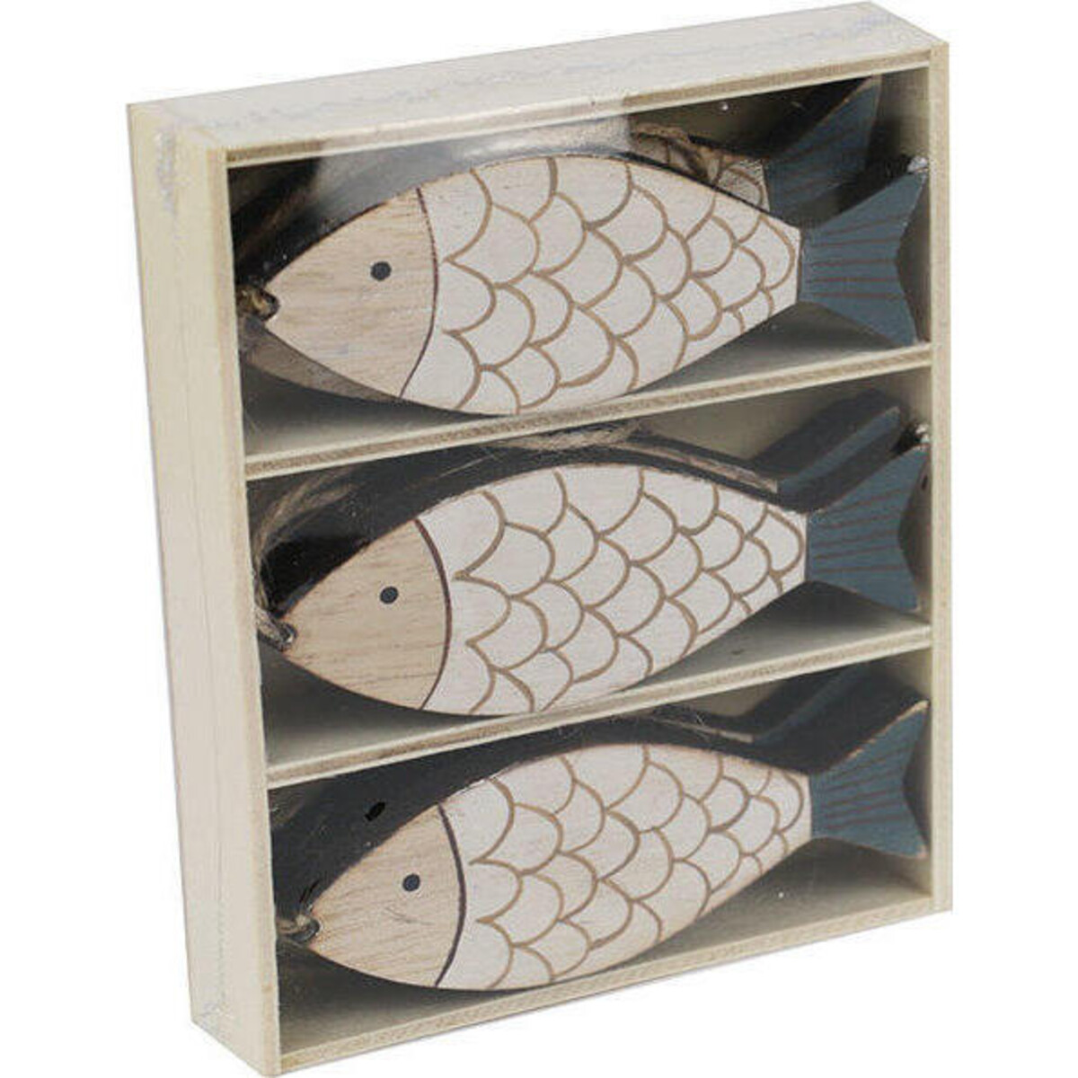 Adding handcrafted wooden fish can be one of the simplest means to make your coastal theme home come alive with the feel of the ocean and its many myriad creatures. And what could be more inherently filled with the wonder of the ocean world that many fish! All you need are the many fish this box contains and string them up in some kind of formation to make a splendid display for the fireplace arch, the window, the doorway or be placed right above your desk. There are individual handcrafted fish that come nestled inside the box, nine in number with each little portion in the box with three in in. The grey coloured fish have been painted and given a lovely smooth finish, very artisanal and village chic. Easy to hang as each of the fish has this tan coloured string loop attached to it.