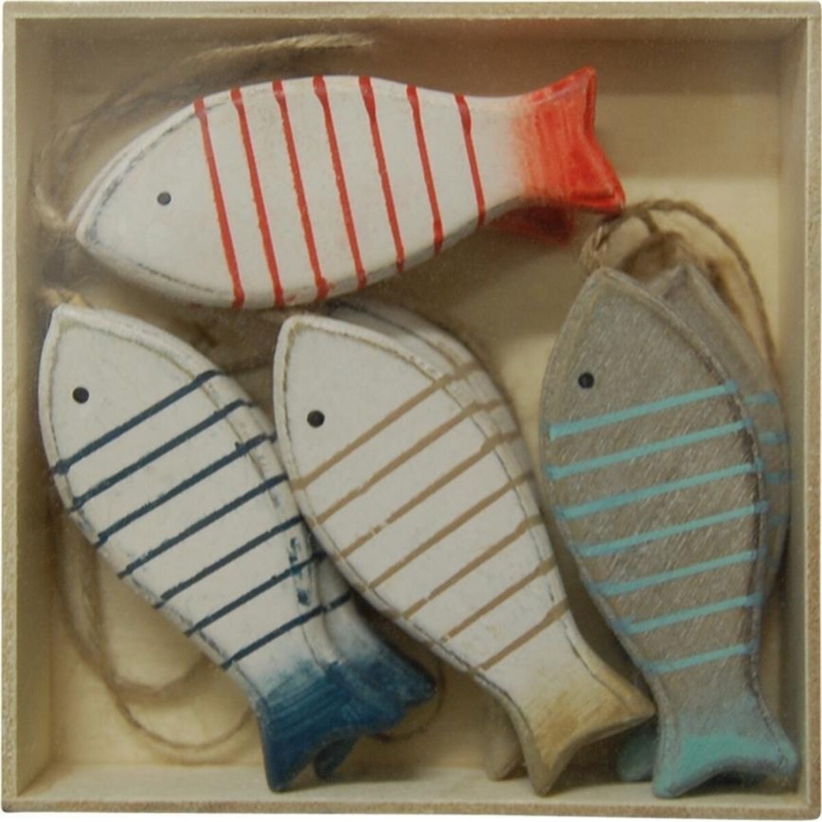 They come sitting nestled in a box, each tiny fish ready at our disposal to be used in any way you desire to use them. The box has eight tiny striped fish, two of each colour that can be strung together to form your very own unique hangable accent. When coastal themed home go looking for a simple yet impactful means to make interiors come alive with more joyous appeal, this set of wooden made fish could come in real handy. The box neatly stacks the eight fish in it ready to use when you decide to place them in varied spaces. The tiny striped creatures can be used on doorknobs, as individual hangable or placed in bunches over a window sill or doorway. The rustic look fish are simple in detailing, handcrafted to a size that makes them most useful and of course come in a set that makes it possible to be used when the occasion demands a little tweaking of the décor to make it feel more nautical. Bring a sense of style and distinction to your decor thee with this tiny but definitive inclusion that comes so neatly packaged.