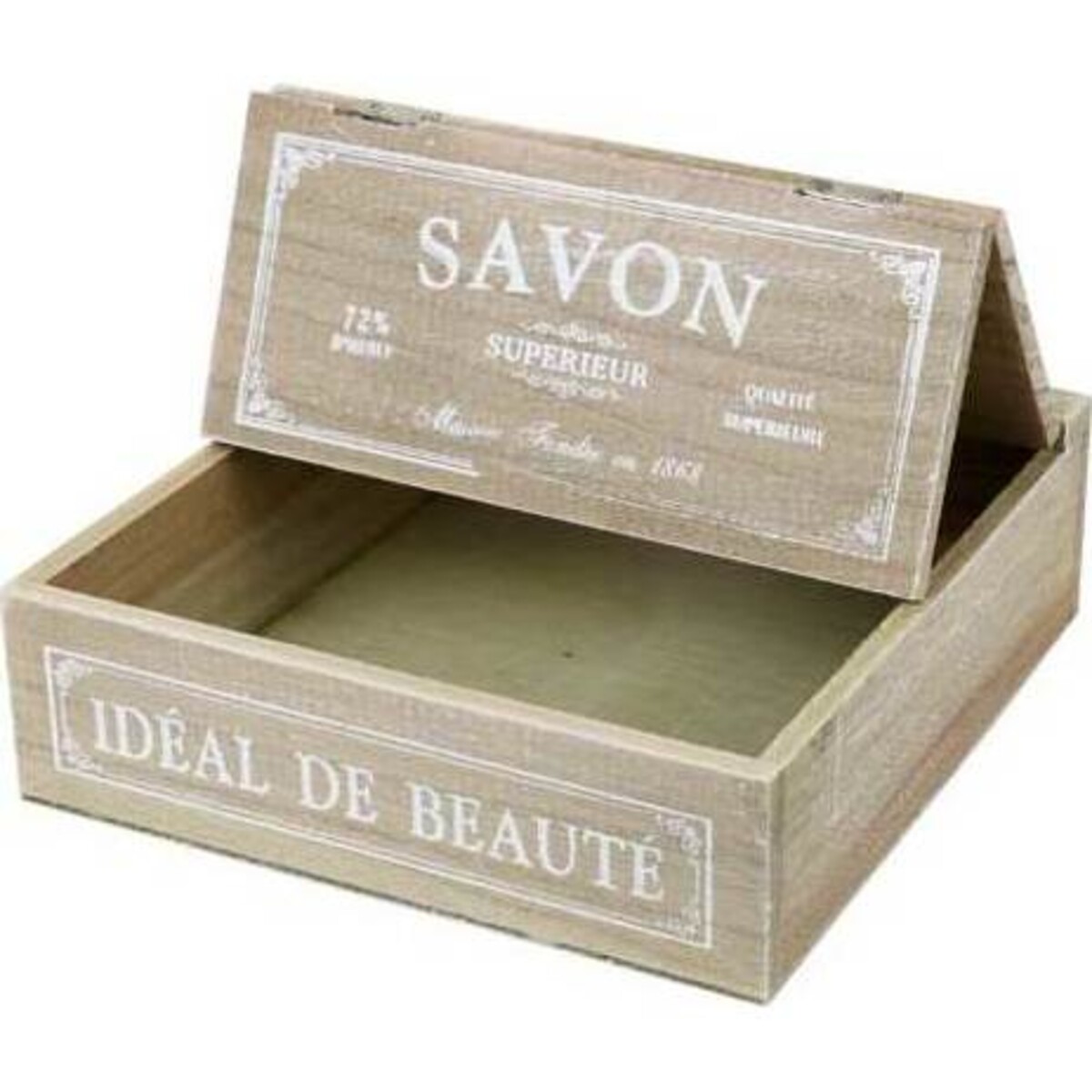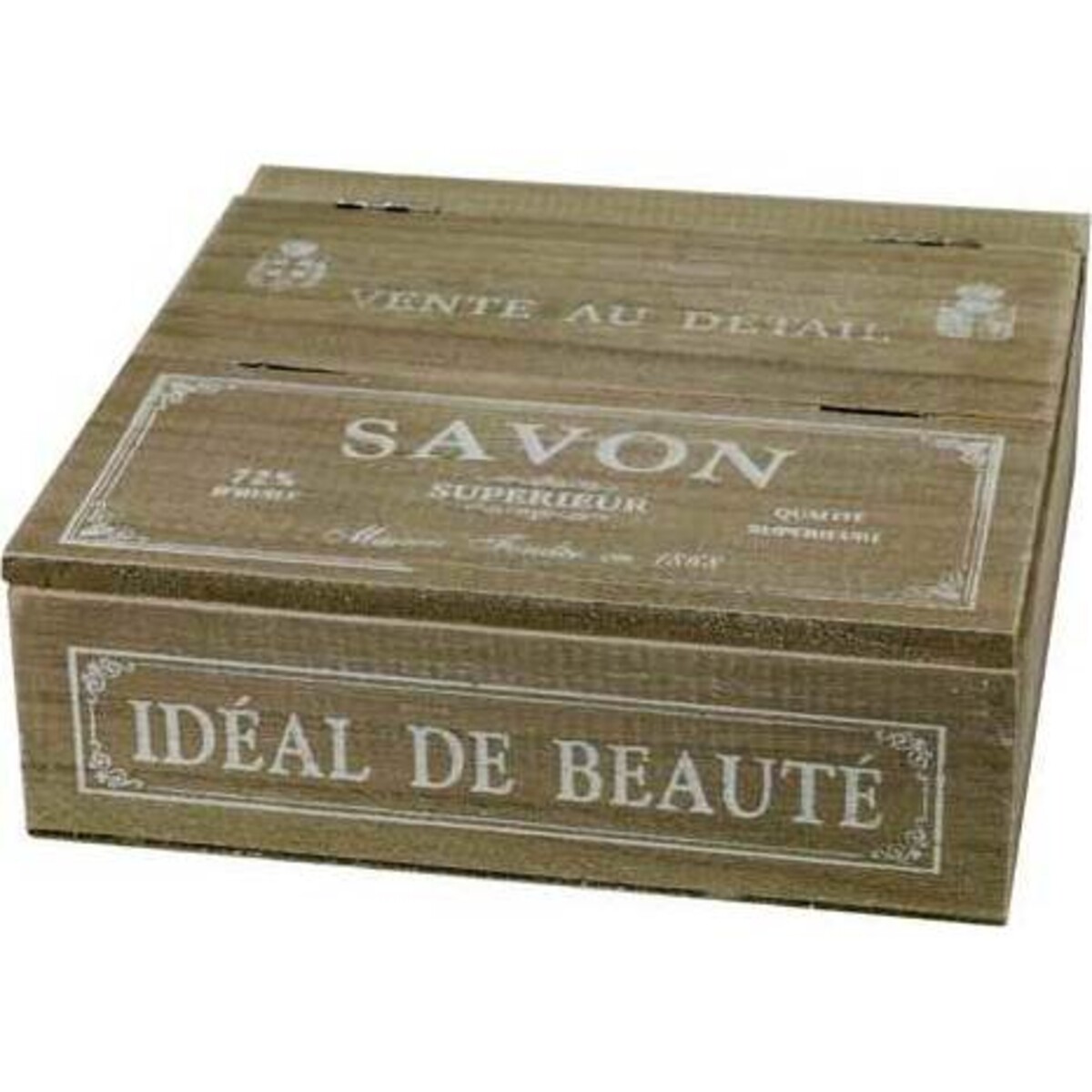 Made from MDF, the folding top jewellery box comes with French words Savon written across it in front as well as the words - 'Ideale De Beaute' - suggesting its use as a place to store things that a woman would otherwise use in her vanity cabinet. The folding upper lid is hinged and can be easily slides off to open the top. The size of the box makes it hugely versatile - being about 21 cm in length and width while it depth is 7 cm - making it suitable for trinkets and keepsakes, or even your laces and buttons. The material used is the kind that can be wiped clean d ad will see you through years of usage. A smooth defines surface, the white print announcing a certain antiquity in the design and the terrific uses this box can be put to use for makes it great find from Lavida for those who want a useful table top organizer. One would not shy away from using this as an accent piece as well.