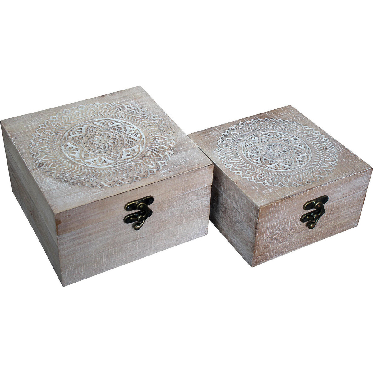 These two wooden boxes can make a wonderful gift set for a boss or colleague that has both style and function. The classic design and neutral colour palette will add familiar comfort and warmth to the living area of a house or in the office and create a stunning focal point in any room. The bigger sized box may be used as a compact jewellery chest to store an assorted collection of jewellery while a small notepad, keys or buttons can be easily organized inside the smaller box.
