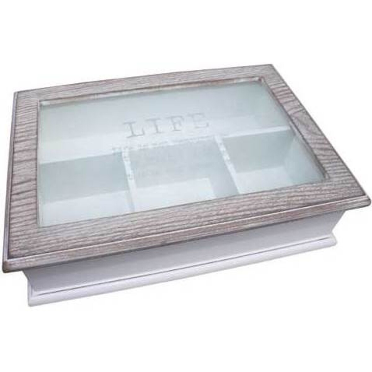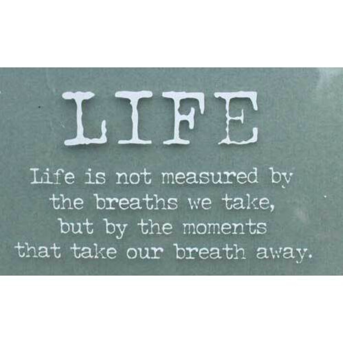 Set with a wooden frame and clear glass, the saying on the top reads, "LIFE. Life is not measured by the breaths we take, but by the moments that take our breath away." There are four compartments inside, one rectangular one and three square boxes, so there's plenty of room to display everything you want. The Miento Box is also fantastic to use for a collage piece for yourself or as a gift for a wedding, baby shower, bachelorette party, or other special occasion.
