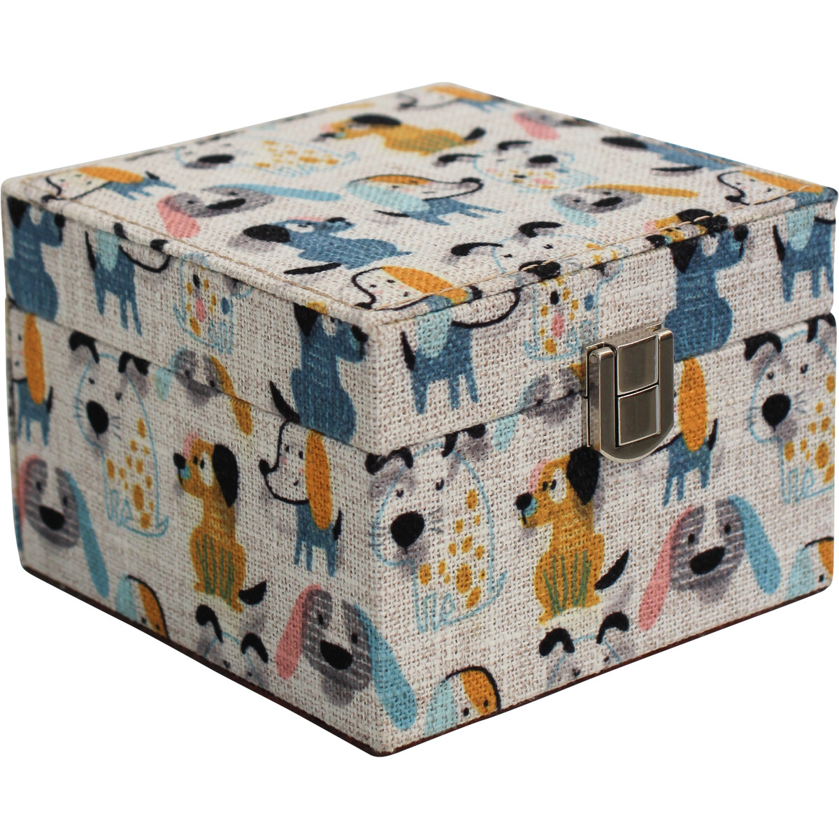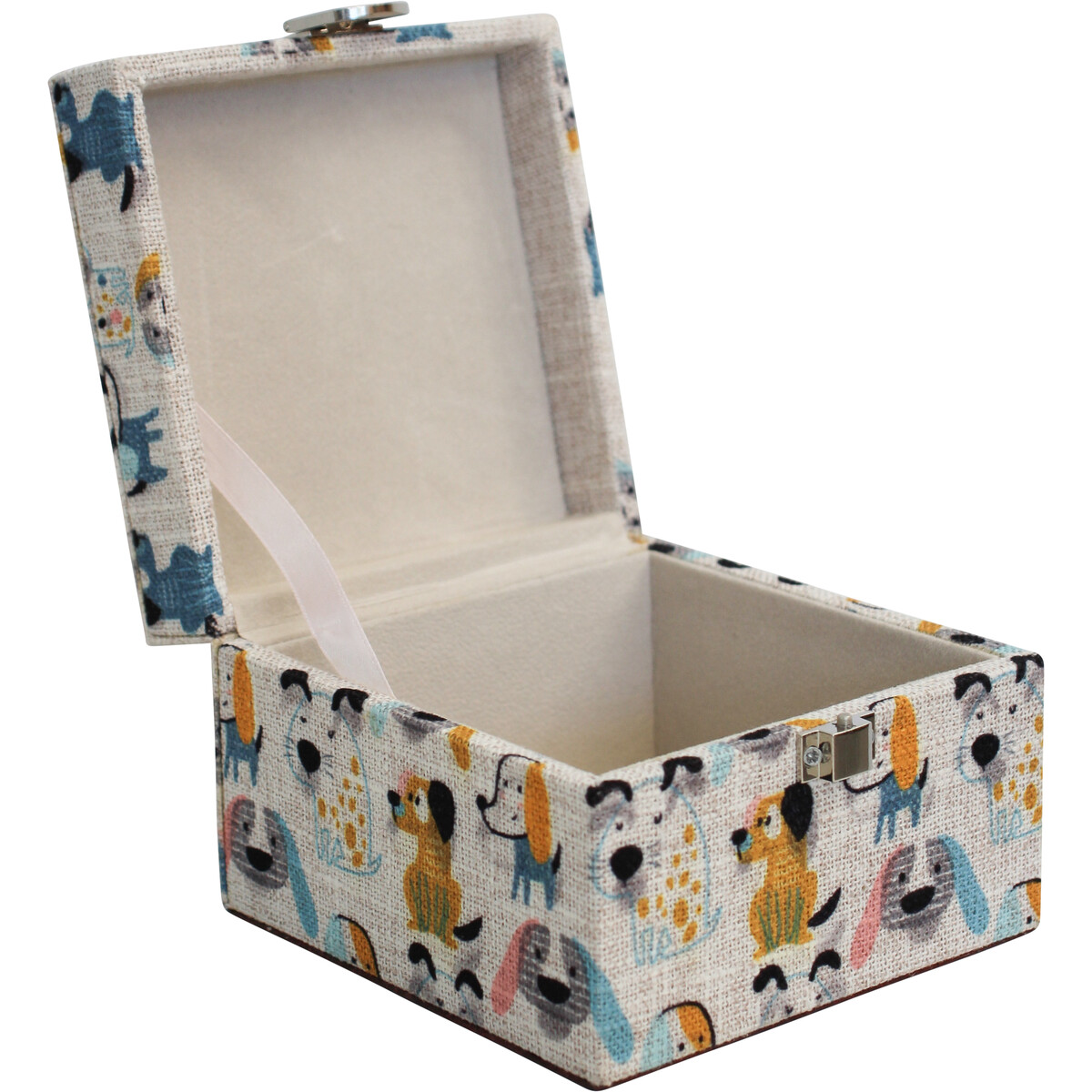 The puppies seem to be having a great time, their cheery presence attractive enough for you to reach for this organizer for your own usage. Created from MDF, given a finish in linen, this sturdy box will hold your tiny trinkets and keepsakes in its single compartment, giving you the advantage of safe keeping and a pretty display all at once. Simple latch makes them easy to access, and the lovely pattern on the linen adds to its adorable kind of attractiveness.