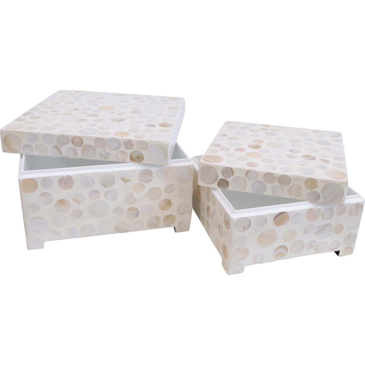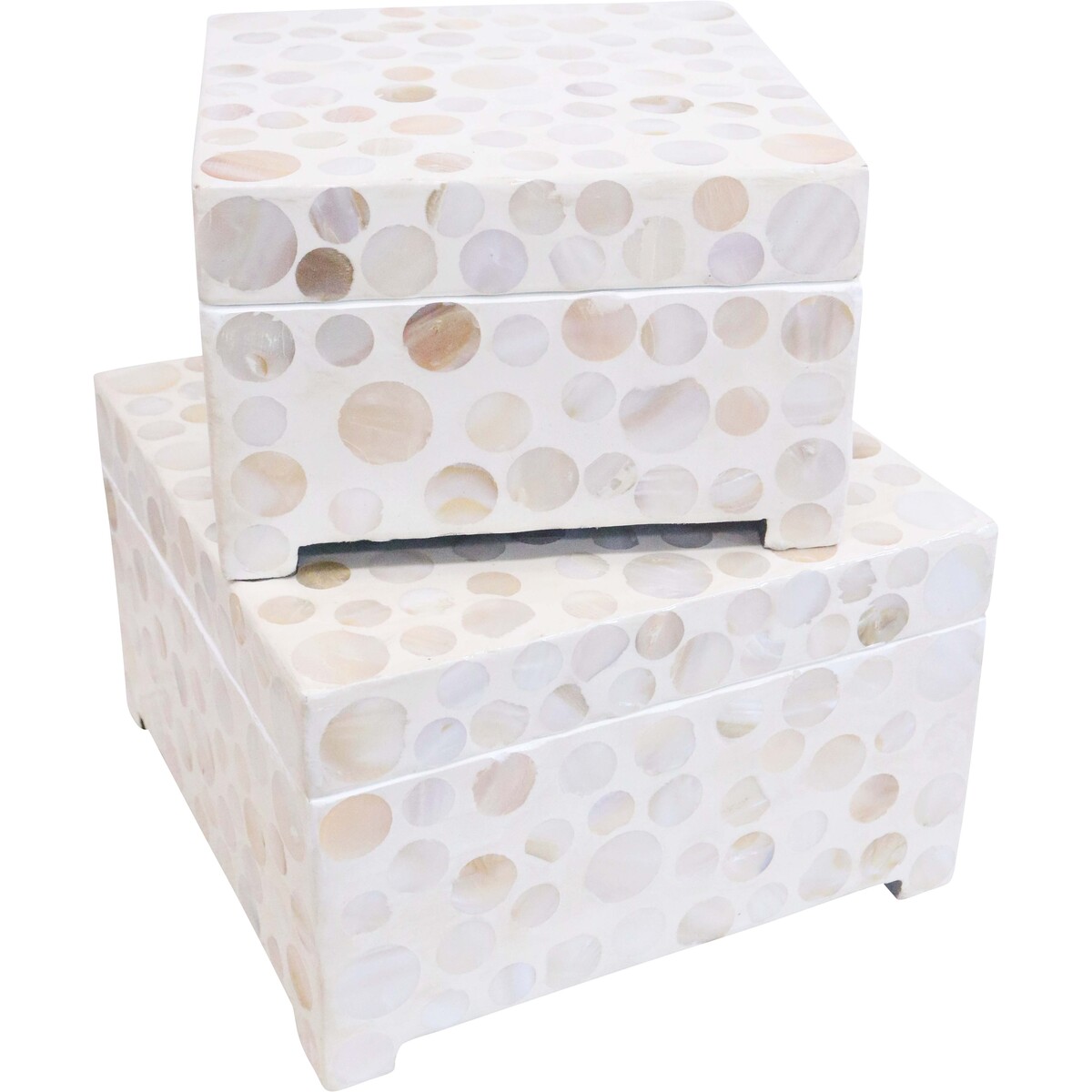 There’s something really special about these MOP boxes and it’s not just the fact that you get two in a set - although that’s a great bonus. These are handmade with natural mother of pearl and mdf, so every single box is one of a kind. It’s always surprising to see what you get in terms of pattern and depth, but that’s exactly why we love this product for homewares and giftware retailers. The subtle beauty of these pieces means you can use them as a little treasure chest in the lounge or as centrepiece in the living room. And their unique design complements all kinds of decor styles. Some shop owners have said they’re such an easy upsell for gifts. We think it’s because they’re practical (dimensions: L:21x21x13cm S:17x17x11cm), pretty, and stylish. Plus, they have a bit of personality from their natural origins!