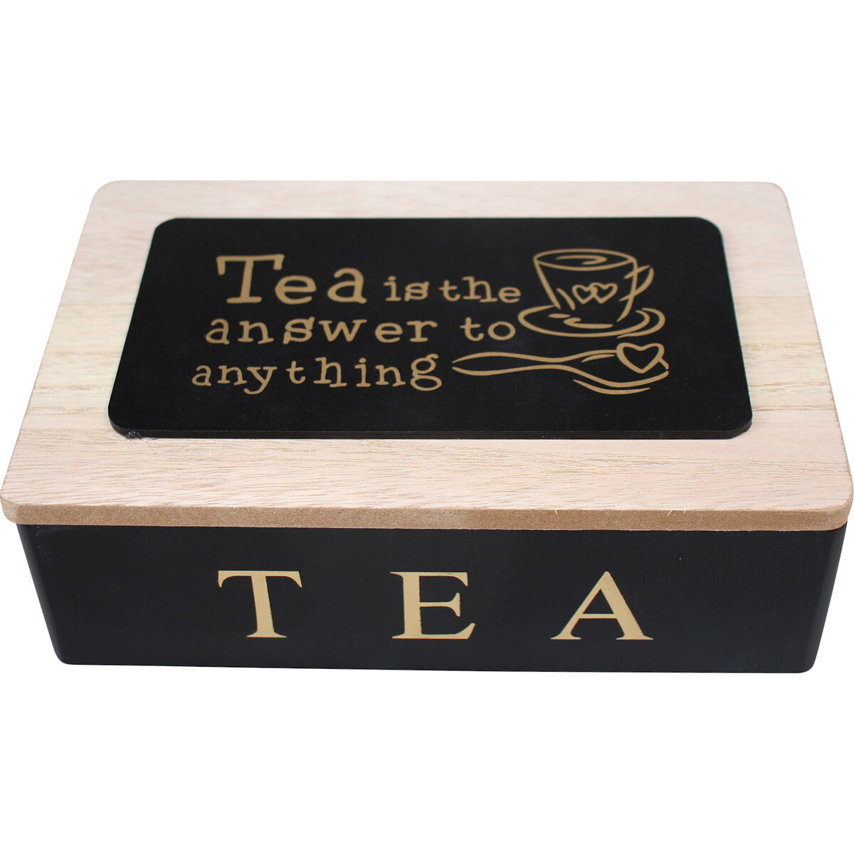 Did you know that some centuries ago during the Middle Ages, there was an art of taking tea in the afternoon? All over the world, we enjoy the flavour, aroma and invigorating health benefits of taking tea. However, all of these properties may be lost if the cured tea leaves are not properly stored. This is why this tea box would come in perfectly handy to ensure your tea leaves stays intact and tastes perfect. The box is made of Medium-Density Fibreboard which is why while it is durable, it is also very lightweight. On the top of the box is an inscription which reads "Tea is the answer to anything". It is designed in cream and black colours.
