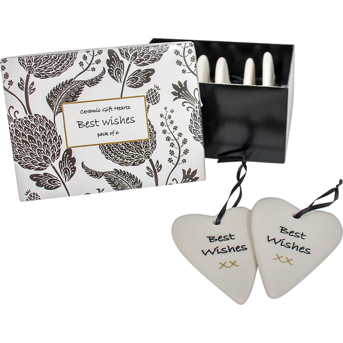 The Boxed Best Wishes Gift Hearts is a charming, handcrafted ceramic heart shaped item that is suitable as a gift item for friends, family, lovers, colleagues, and even casual acquaintances of your customers while being perfect for all occasions. This is because the smooth glazed, white ceramic surface bears the words "Best Wishes" which is short for "I wish you all the best" on the recipient's birthday, graduation, wedding, New Year, promotion, recovery on the sick bed, retirement and on every other occasion that warrants a gift. It is a long lasting, inexpensive way to convey our heartfelt good wishes for the person.