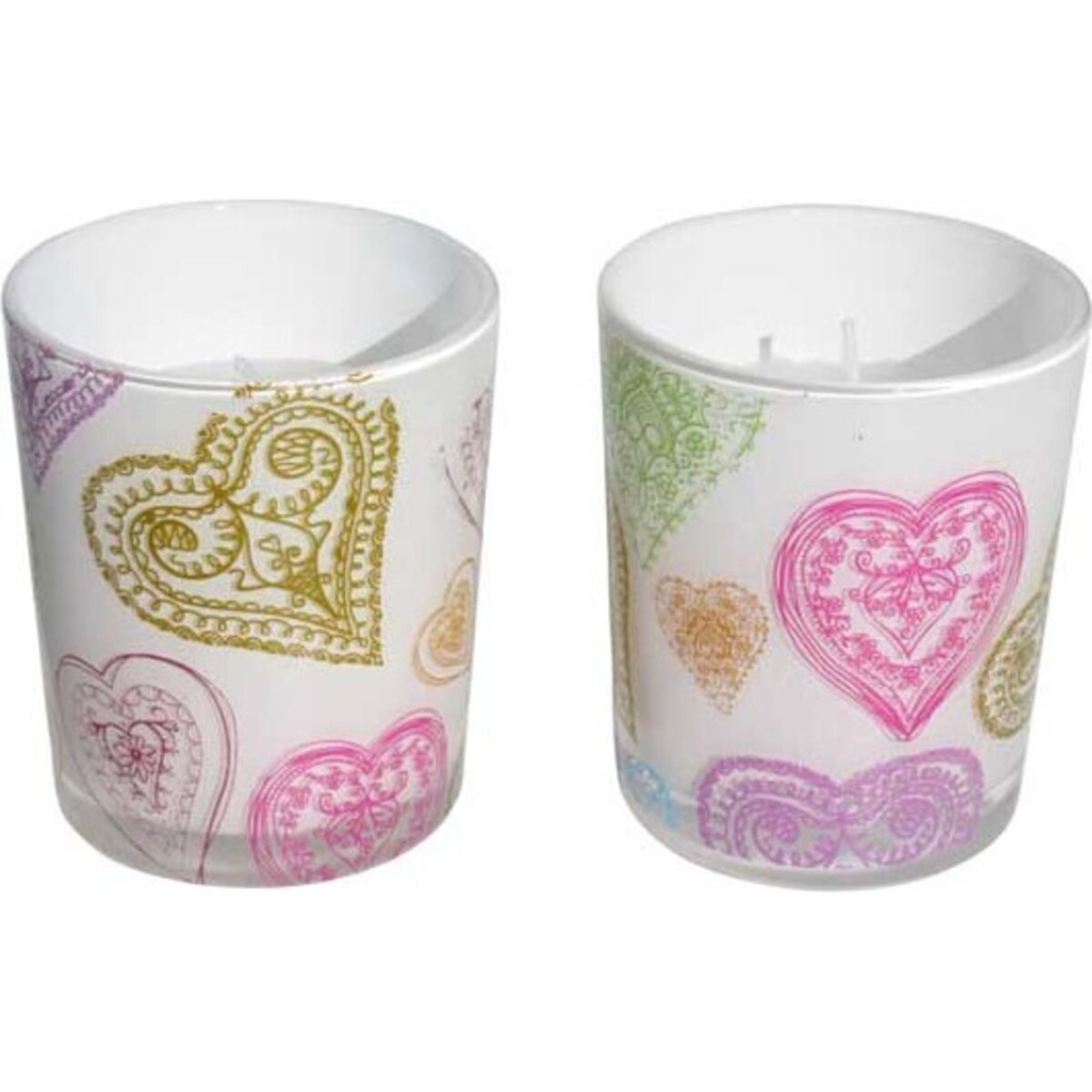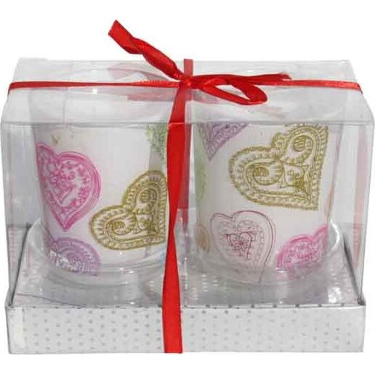 This Boxed Votive - Colour Hearts - Set 2 is double the elegance with the standard sized glass candle holders printed with hearts in variety of palettes.
