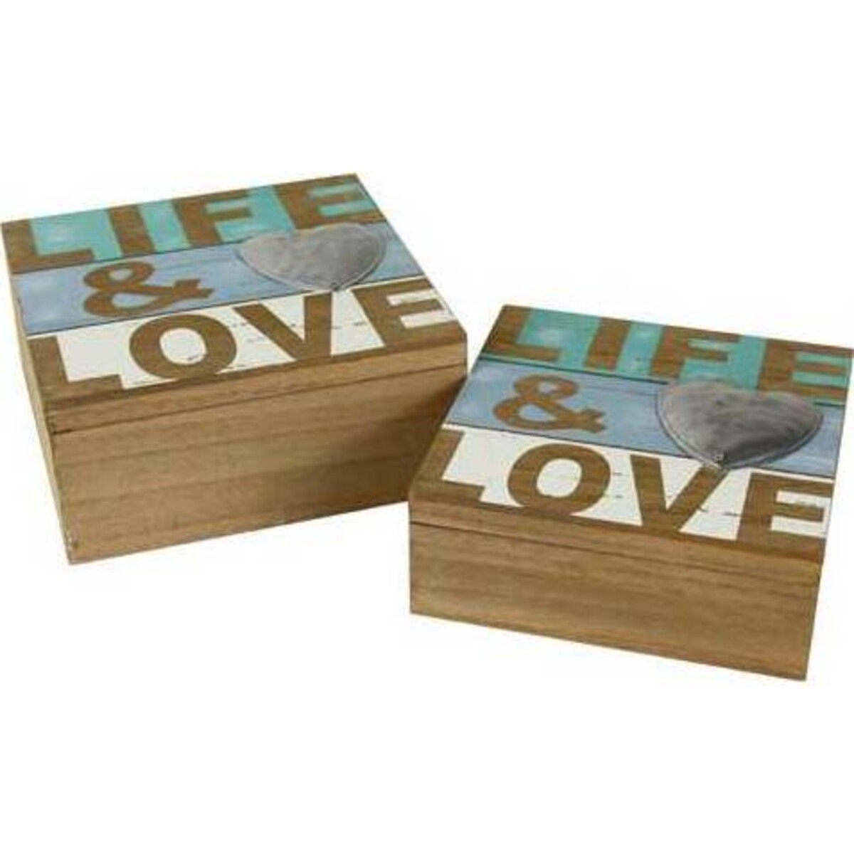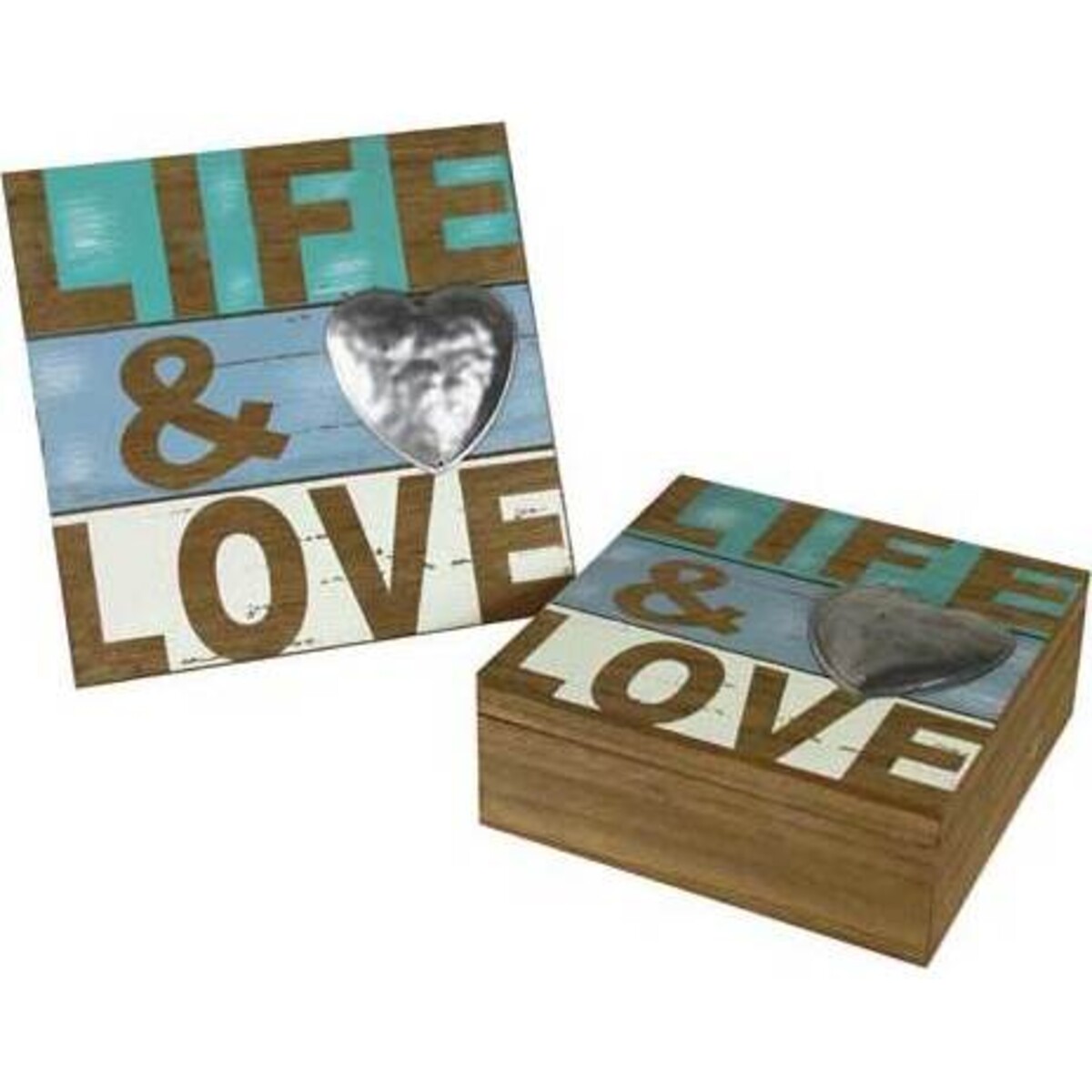 Everyone needs an organizer and when such boxes that help us keep our chosen articles safe and well within reach, are so great looking, then it as much a part of the décor as any other element. The boxes made from MDF will last a life time of use and with their soft and elegant graphics and colouring will look fabulous chic placed in any space. The message on its 18 cm face reads quite simply - Life and Love - a message that makes a difference because of its simplicity, not just of the thought but also that it is rather easy on the eyes in terms of its colour combination and design. The sturdy lid rises with ease and the compartment within the boxes will be adequate to house numerous of oneés things. The little gray heart detailing looks all the more pretty be it for the home or office space, helping to personalize the look in a simple and charming manner.