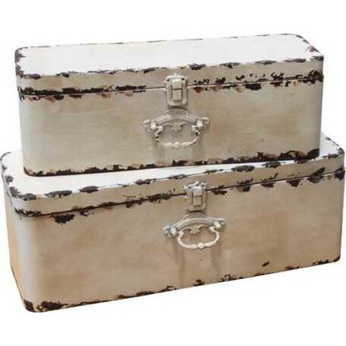 Boxes Metal Serra S/2 features a dual set of cream - like boxes that carry a handle at the centre - front and a fastening lock just on top of it. The two storage facilities exhibit a classic look which makes them ideal for ferrying items when moving out of a home or office. They are of varying sizes with the large box measuring 48x19x17 cm. Different kinds of items may be placed on these metal units, including stationery and various types of hardware belonging to a home or office. Buyers can position them at different points within a desirable setting, where they may serve as storage points for infrequently - used items.