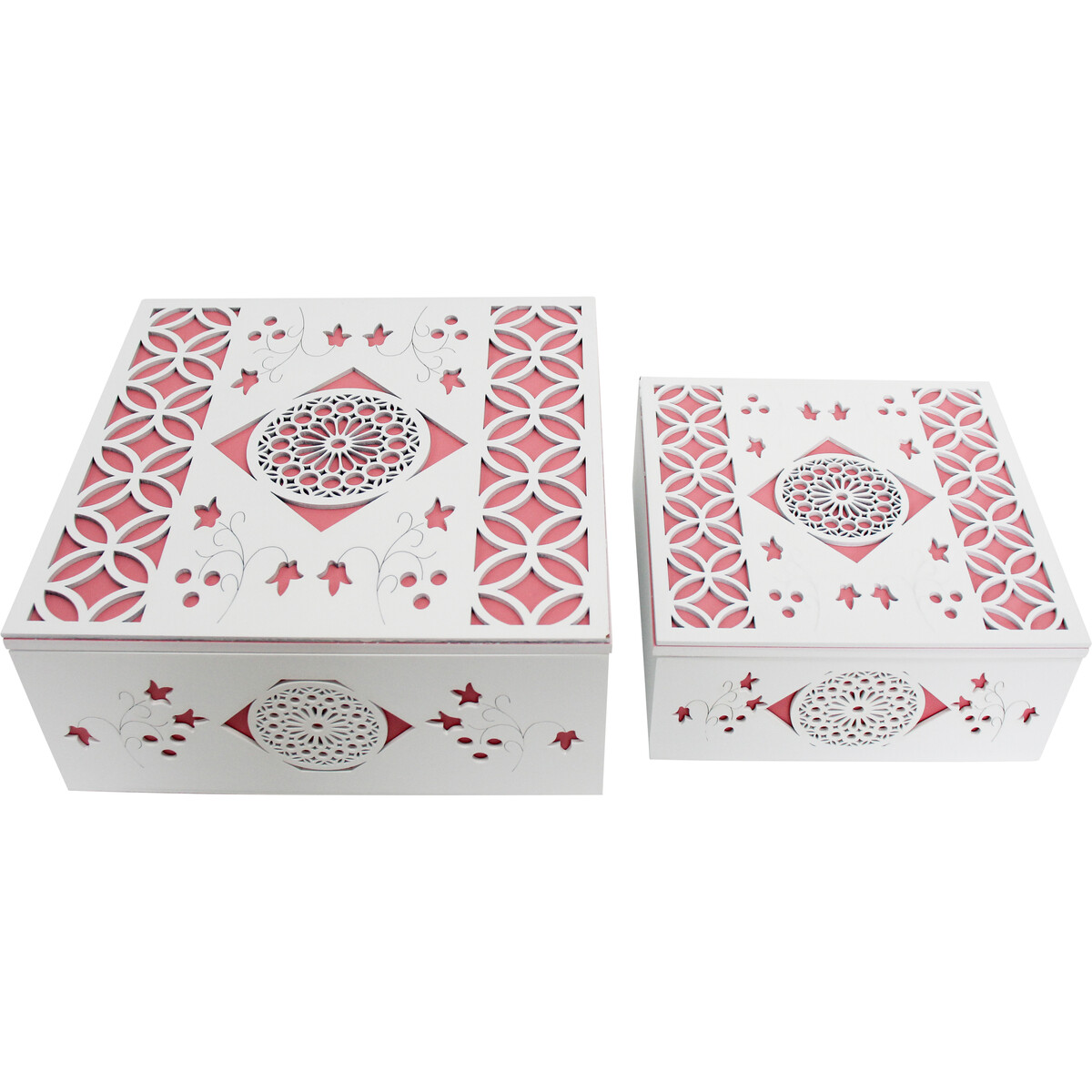 Given the fact that Boxes S/2 Blush is crafted in a design that is tight sealing, this charming looking box would also be perfect as a box useful in storing precious herbs and spices without losing the aroma and fragrance. It can also be used in the bedroom as a box for trinkets, jewelleries and the like. Even without placing anything inside, it would be useful in adding a pretty decorative touch to every bedroom and wherever it is placed. Its palette of brilliant white and deep pink would be alluring to every woman.