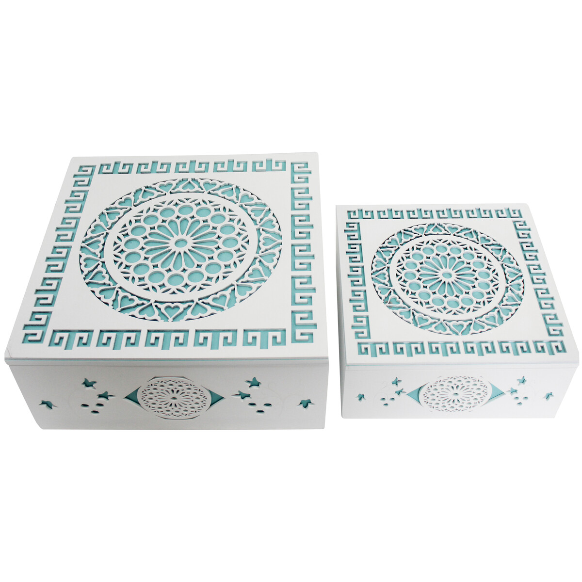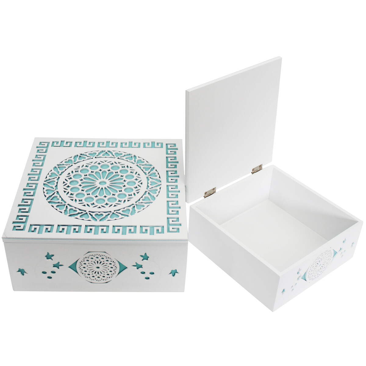 The Boxes S/2 Sky is made in a perfectly squared dimension which is both compact and convenient for storage and travels. It is sold as a set which consists of two differently sized boxes, but both of which are crafted in the same design. The larger sized box measures 24 centimetres in its length, 24 centimetres in its width, and 10 centimetres in height. The small sized box on the other hand, measures 18 centimetres in length, 18 centimetres in width and has a height which measures 8 centimetres. The choice of jade green and pristine white palette is especially alluring.