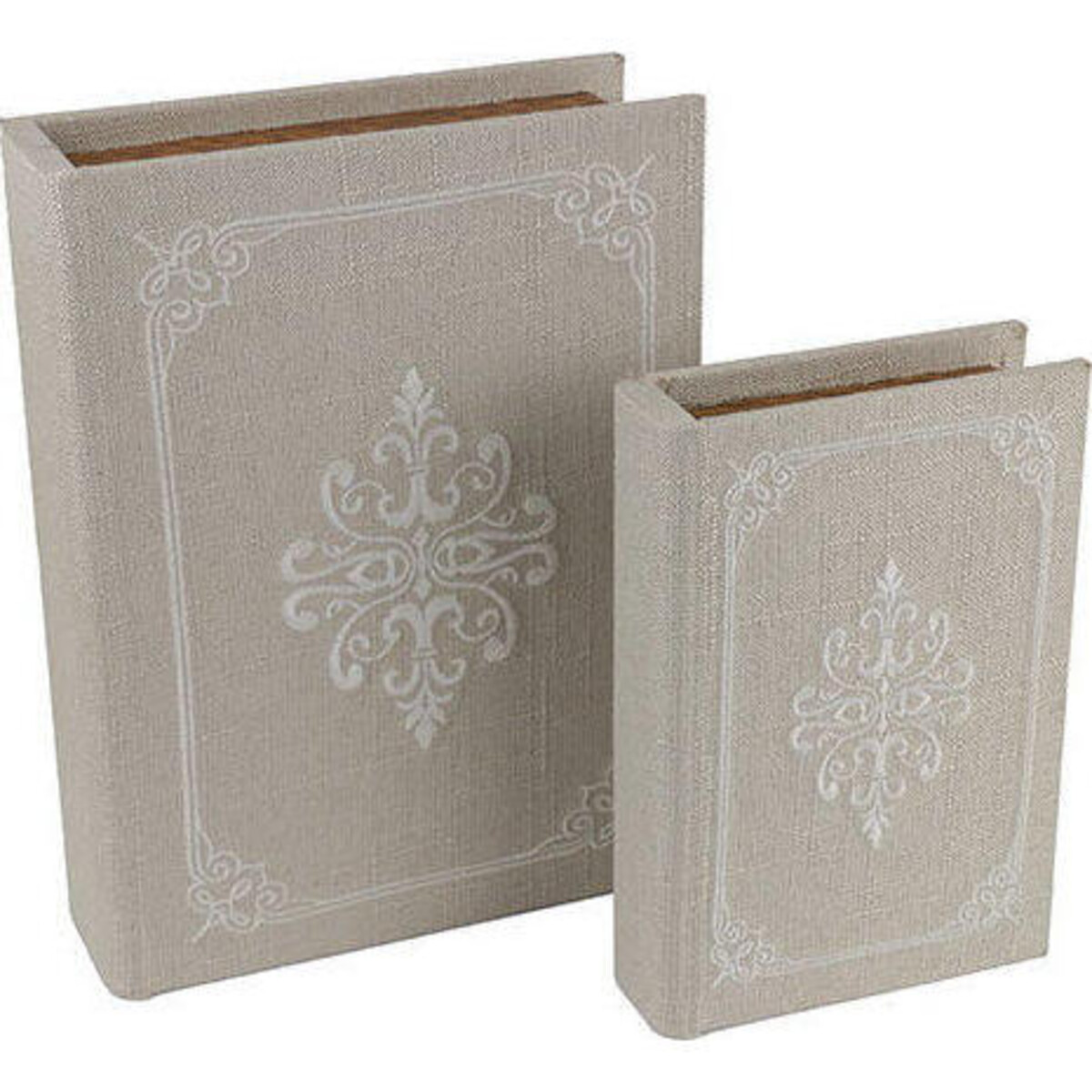 There is no reason asking why something are so very precious for you - and generally you always are on the lookout for those elusive little boxes that will not just allow safe keeping but also while at their task, make the space look relay pretty - here is a set of two boxes almost sized like books and so very spacious when it comes to their inner space. The wood and resin made boxes come in pretty and demure shade of ivory with a delicate design on the exterior. The smaller of the two is a mere 4 cm in depth with 18 cm length and 12 cm width while the larger one has depth of 6 cm and a length of 24 cm and width of 18 cm making them large enough to give a safe and spacious home for your trinkets and the likes. Go o and indulge a little more in adding to your collection as you now could have the safest possible box to keep them in the most unhampered of ways. The boxes come well finished with dark interiors and having a sound structure so as to make them as tamper free as possible.