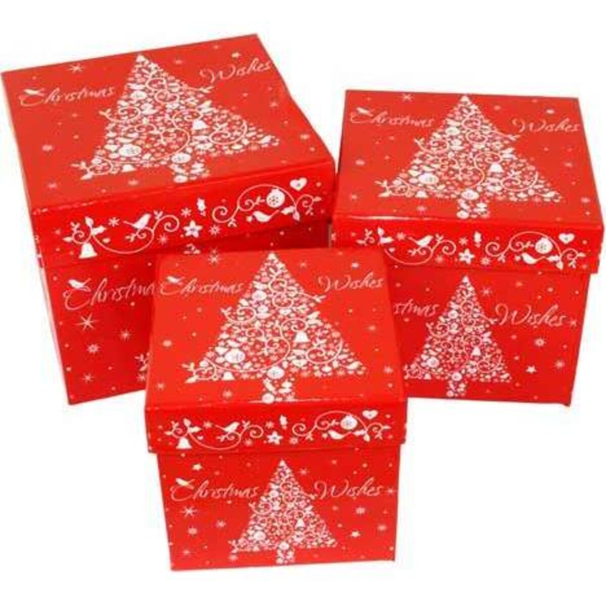 Boxes Snow Tree S/3 is a set of three boxes designed in style, where the largest one measures 14x14x12 cm. They are adorned beautifully in red covering all around, featuring beautiful artistry depicting a snow tree, done in silver. Use of red colour makes this box to appear striking, making it ideal for presentation of gifts at a wedding ceremony, birthday party and marriage anniversary among other notable occasions. Boxes Snow Tree S/3 offers its users extra capacity for storing numerous personal or even office items in orderly, yet elegant fashion. These boxes would look brilliant when placed next to a Tree on Christmas.