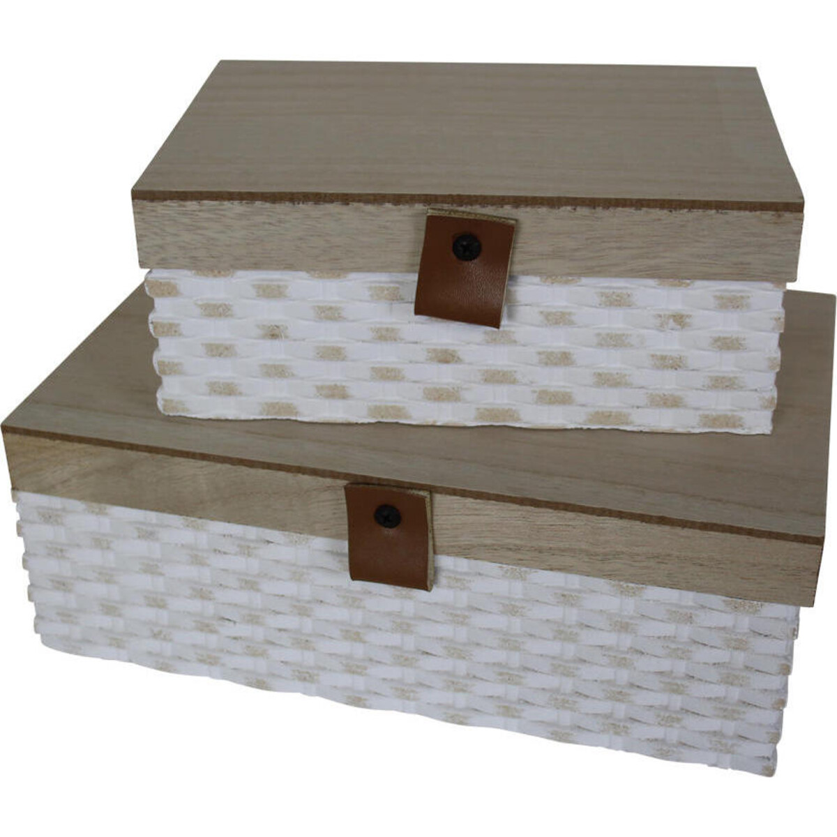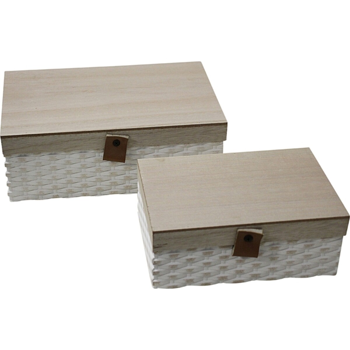 Having the right kind of storage option makes for a well - organized home and Lavida from time to time, has offered and curated the finest of boxes and storage spaces for all kinds of needs. Here is a set of two lidded boxes whose design in a weave pattern has been fabricated from MDF, which is lightweight yet sturdy. Designed to give adequate spacious interiors to store right from trinkets to small collectibles from your travels - the box could be your stitching kit or for your exotics teas and spices. There is always need for such options in each room, even your kitchen counter and your bedside table. Keep them available in the children's room too for that odd button and the trinket whose pair simply went missing, or the last tooth broken! Designed for easy access, the lid can be lifted with the help of the little piece of faux leather riveted on to the side. The boxes come in a set and can be stacked to save on space.