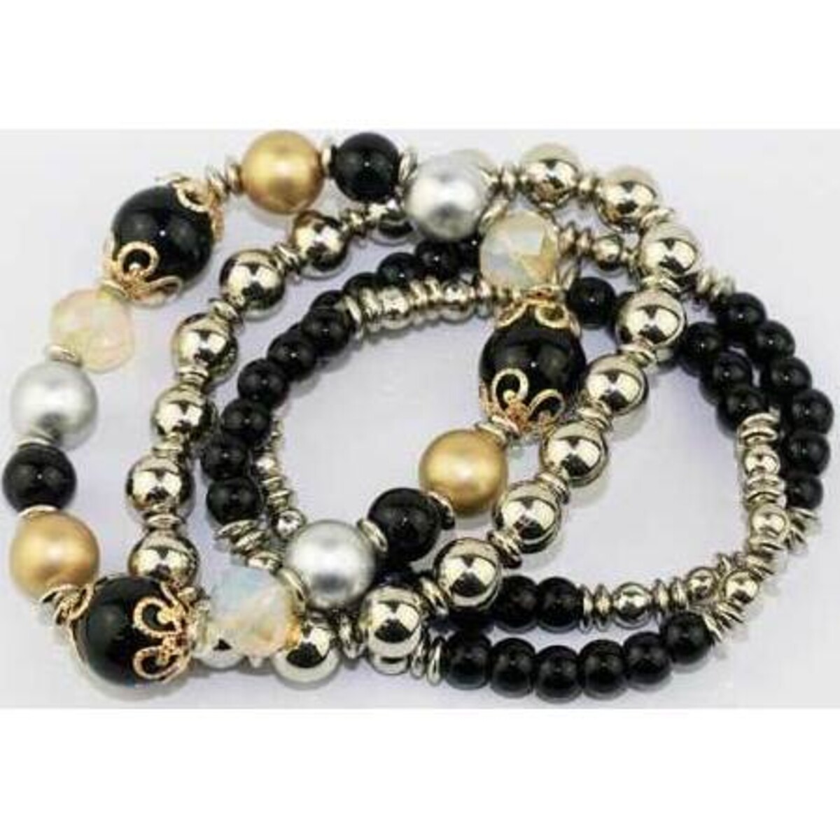 Black and silver is one of the most classic colour combinations in the world of jewellery. With that in mind, this set will be fitting for virtually any outfit that you pair with it. In addition to the black and silver combo, there are slight traces of gold on the bracelet set that resembles the jewellery that kings and queens worn in Egyptian times. The mix between dark and light gives you the ability to mix and match your ensemble a variety of ways.