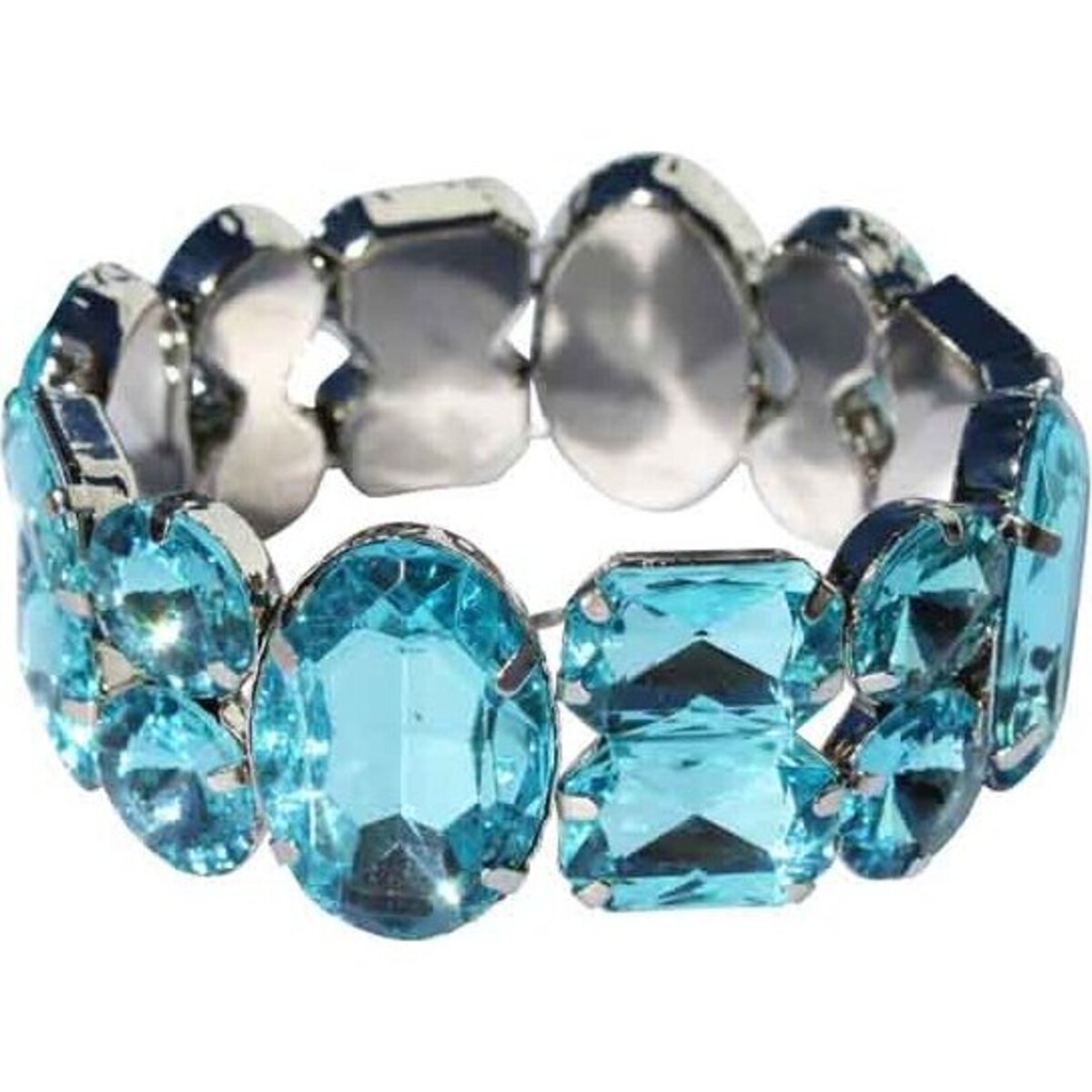The Bracelet - Cristal Aqua Blue features large aqua blue crystals that come in three different cuts: oval, emerald, and round. Its stunning and glamorous design makes it perfect for grand events.