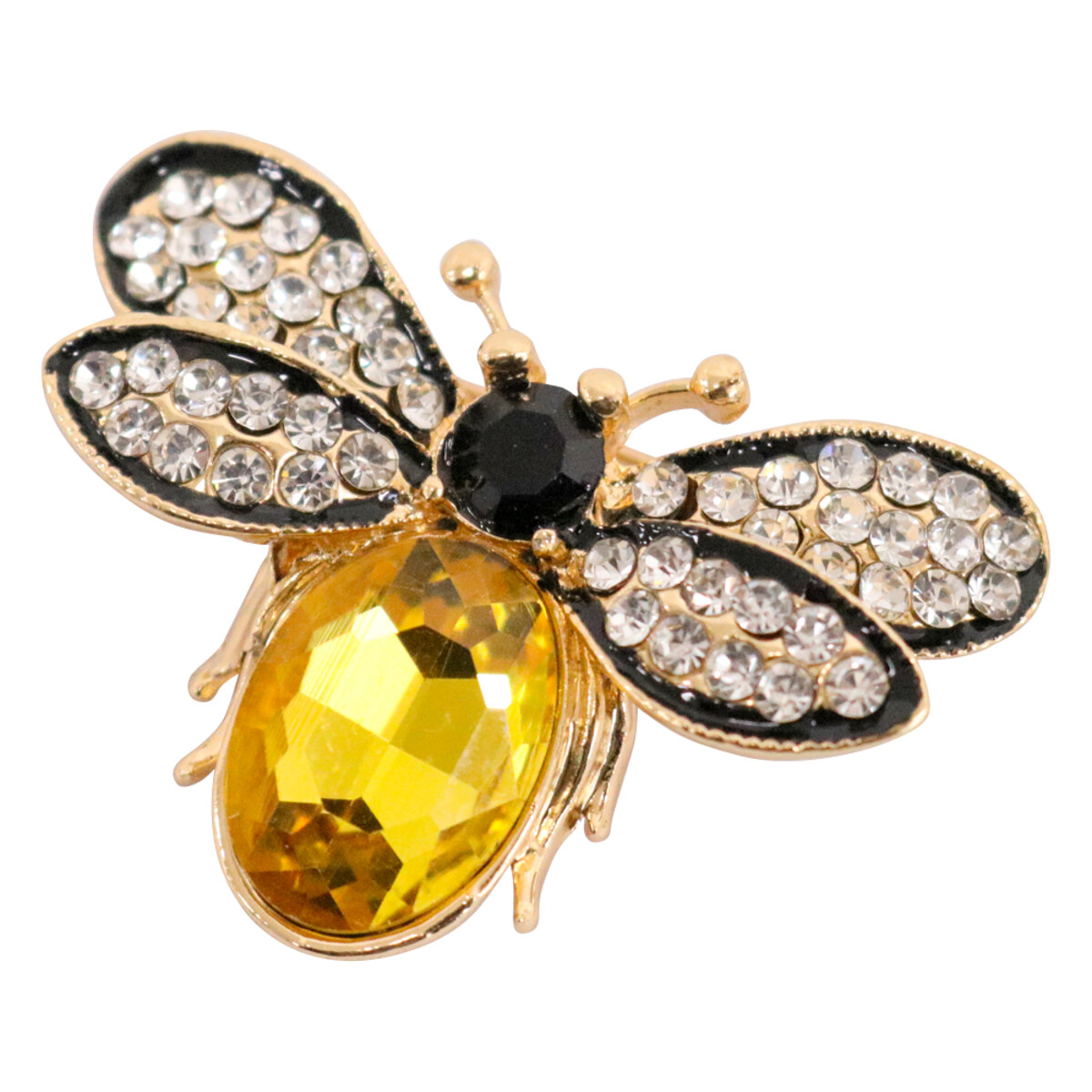 We love this one. This Brooch Bee makes a delightful addition to any jewellery collection. It stands out for its bright, cheerful design and beautifully crafted detail. The wings are detailed with glass stones, giving it such a charming finish that just draws your eyes in. The bee's body is adorned with a large, vibrant yellow gem that really helps the piece pop.