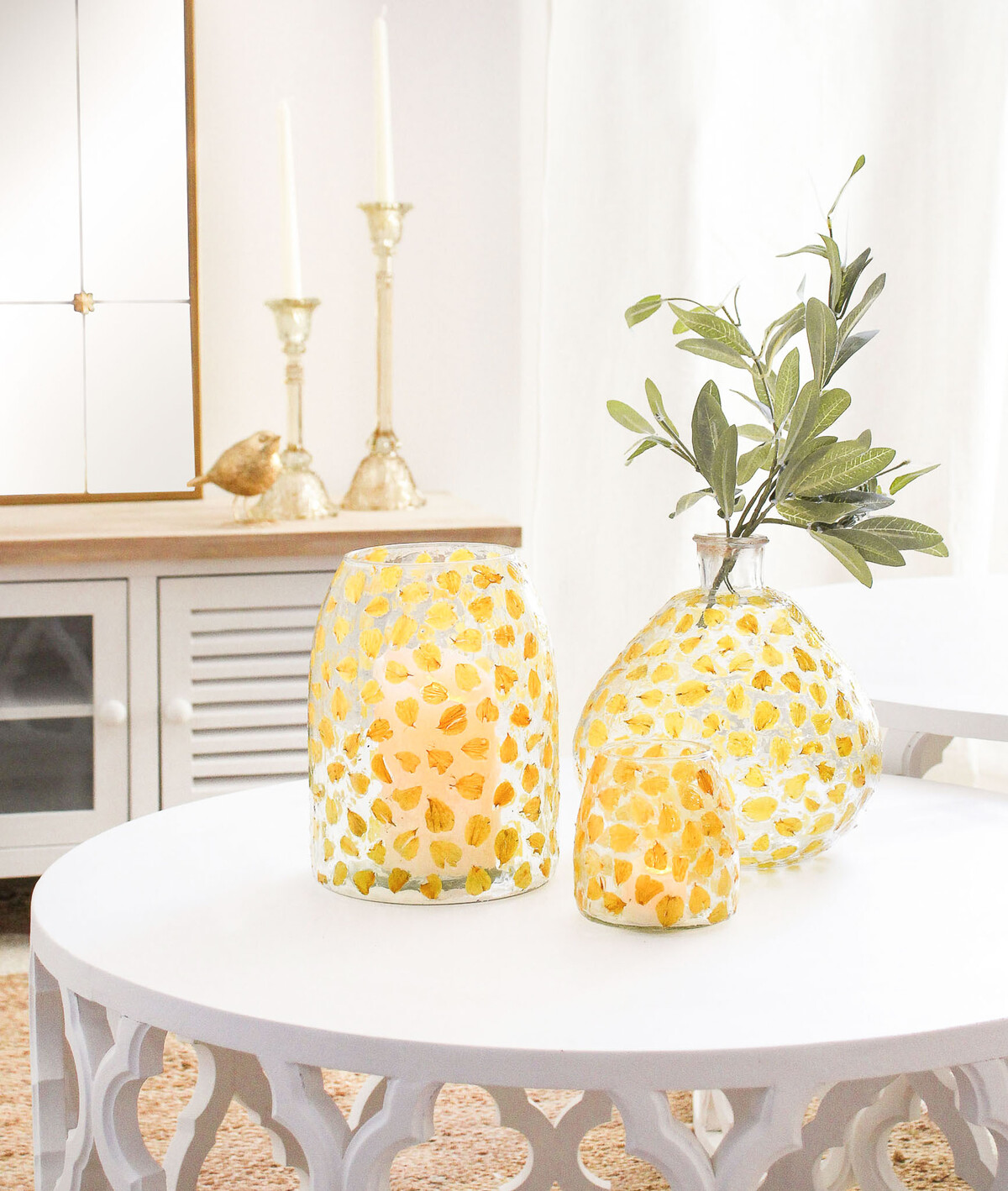 It’s not every day you find something with this lovely yellow warmth and interesting shape. The vase has a clear glass base that shows off the amber petals floating in the resin. And it’s still neutral enough to work for different décor schemes. This one would look beautiful on a display table or in a bright window at home - even better, we can see it making an entrance way pop or bringing some cheer to an office desk in those more sterile spaces needing a bit of colour and lightness.