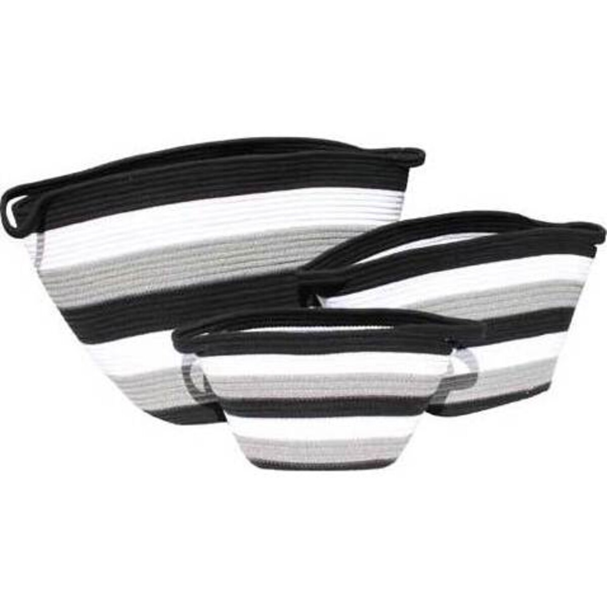 Organizing of stores, be it at home or in commercial , requires neat and roomy holders or bags that help contain one's necessities in an organized manner and make it convenient also to access them as and when needed. This set of three storage cum carrying bags come with the promise of great quality as they have been made from cotton rope, making them sturdy and are also large enough to help hold a relatively large amount of items. Whether used as a storage for things in the kitchen, or for carrying things in the boot of one's car, this set of bags has all it takes in terms of design, space and durability. The handles are kind of built into the sides of the bag's natural weave and thus this takes away the fear of it getting detached due to excess weight. Apart from the looped handles that are easy to grasp, the bags are also tapering in shape making yet with a flat and prominent base that will allow it to balance as well. The colour combination in black, grey and white looks positively stylish and very modern.