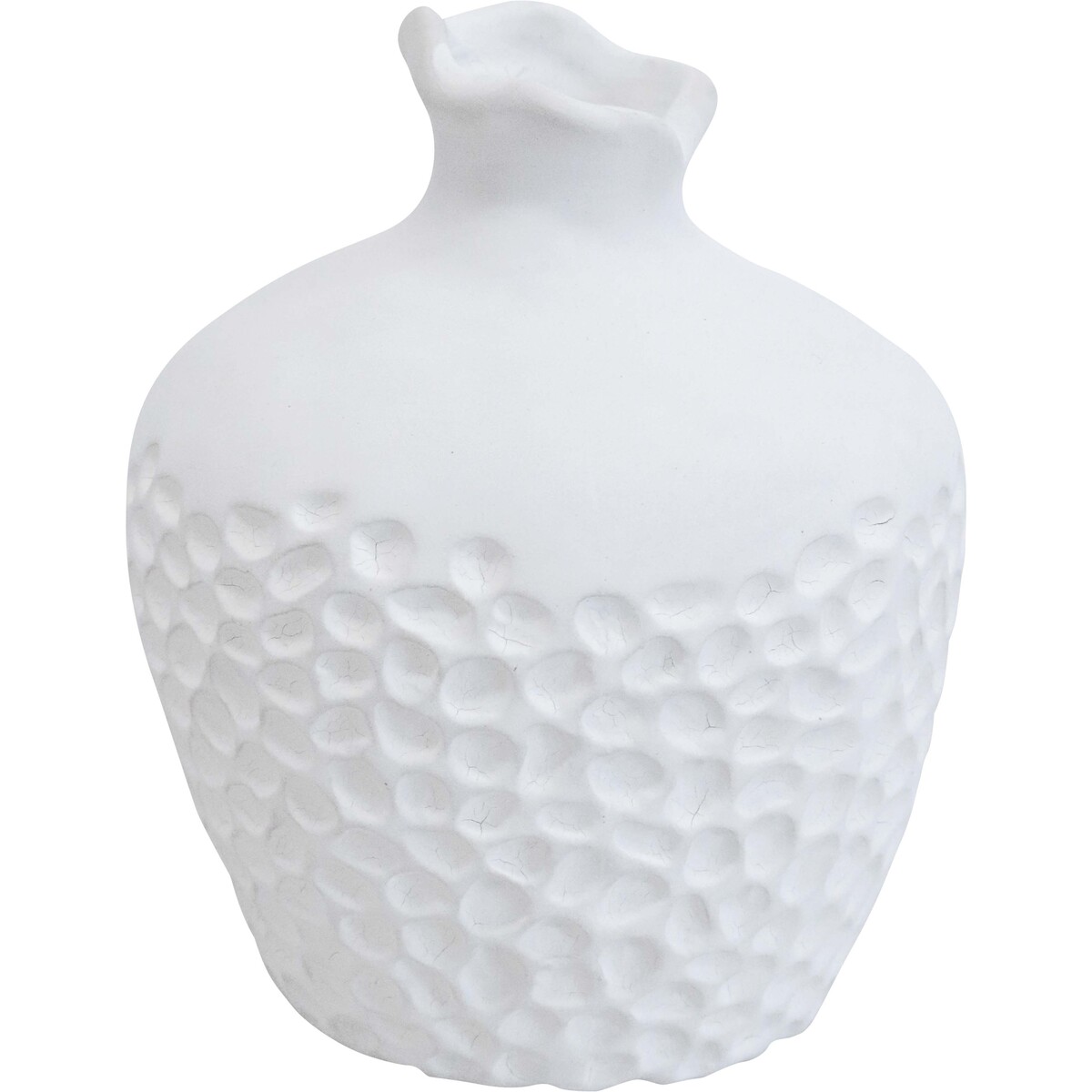 This bud vase in textured white really is one of those pieces that draws eyes the moment you walk into a room - it brings texture and shape, but also, just this nice sense of calm. The curved, almost plump form means it doesn’t feel harsh or industrial (even though it’s made from ceramic), and with a matte finish it gives a soft, almost cloud-like effect. It’s pretty compact too - we’re talking 9x9x11cm, so there’s no risk of overwhelming a narrow shelf or cluttering up the space. That’s probably why we see so much interest from our retailers when they want something that sits comfortably with Scandinavian, classic, or minimalist aesthetics. The pebble surface detail brings an extra dimension and a bit of visual drama for customers who want something more tactile and unique, but it also fits well with traditional textured pottery collections (think French provincial kitchens). It’ll be popular in both home and office spaces because it’s subtle but stands out enough to be noticed without needing much effort.