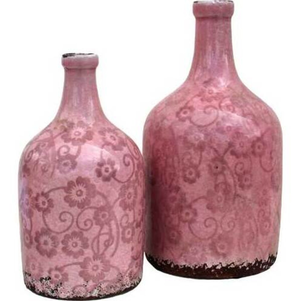 The blush coloured vase features a dark blush floral print as well as black detailing along the base and at the lip. It's large enough that it can hold a tall bouquet, but not so large that it takes up a substantial amount of shelf or table space. Large flowers, such as peonies, would complement these vases perfectly. Whether you put them on your mantle to your front porch or any space in between, they're certainly going to stand out for all the best reasons.