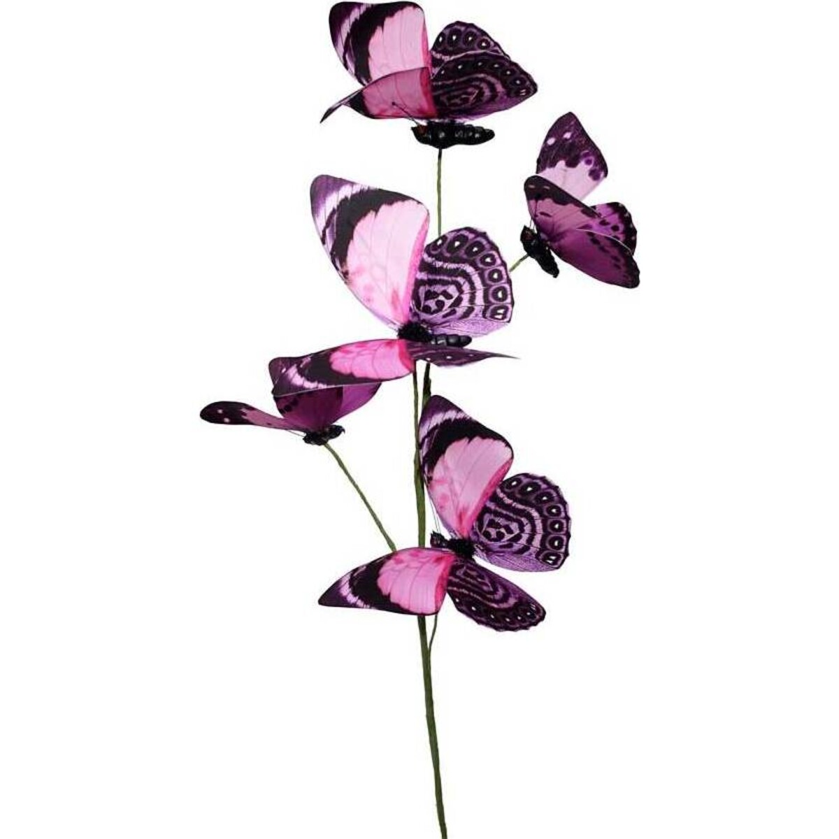 Each dark stem features five butterflies, each of which is pink with black and dark purple detailing. You can put this flight of butterflies anywhere from in your plants outside to in a floral bouquet indoors, and in a vase by itself to incorporating it into a centerpiece. They're even lovely enough to use as wedding d?©cor. Wherever you put these butterflies, they'll add a vibrant burst of colour to even the smallest of spaces. Expect to get a lot of compliments on these little butterflies, with many asking where they can get them for their own.