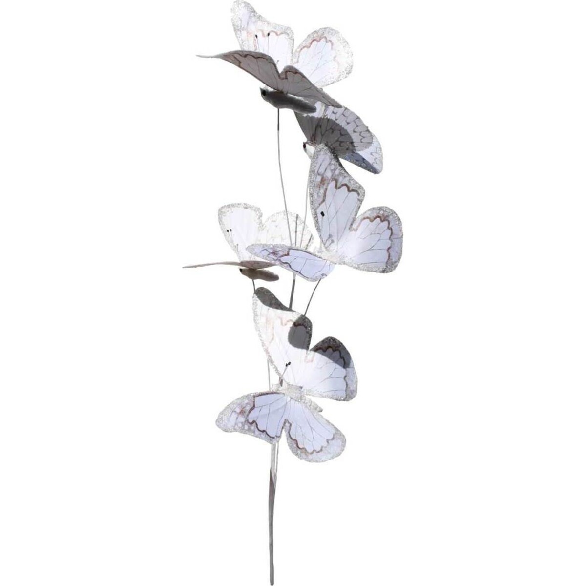 Each stem includes five white butterflies, each of which features tan detailing on the wings. Every butterfly is attached from their body to a stem, all of which come together to form a single piece. Whether you incorporate the accent into a bouquet of flowers, form a bouquet of butterflies, or insert it into a centerpiece, the piece is so lovely, you'll look for any excuse to display it around your home. While the butterfly stem is lovely to use on a daily basis, it's also gorgeous enough to use for a formal occasion, such as for a wedding.