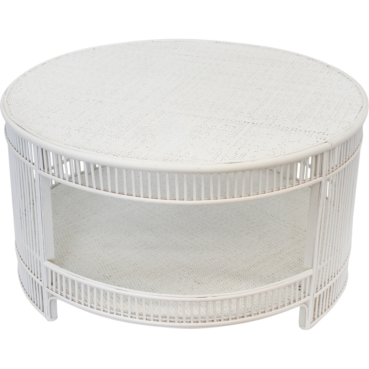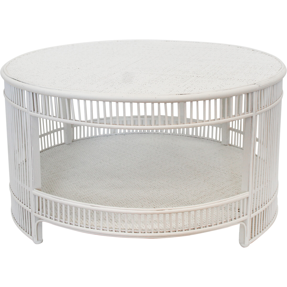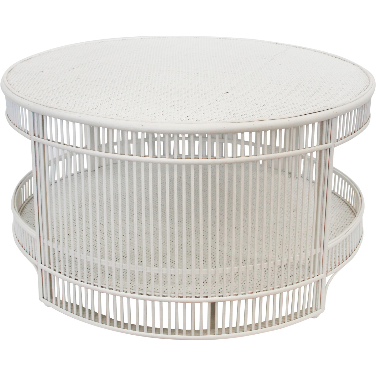Showcasing a cylindrical silhouette and an aesthetically unified rustic theme, this Byron Coffee White possesses a decorative flexibility that is engendered by its unique hand crafted design and thoughtful choice of universally appealing pristine white palette. The flat looking top and another section towards the base which is also a flat looking surface are both elegantly crafted through the weaving of rattan materials. It would be perfect for use as a display stand, as a coffee table and also as the room's centrepiece. Please note that each piece is handcrafted and hand-painted. As such, there may be slight variations and imperfections.