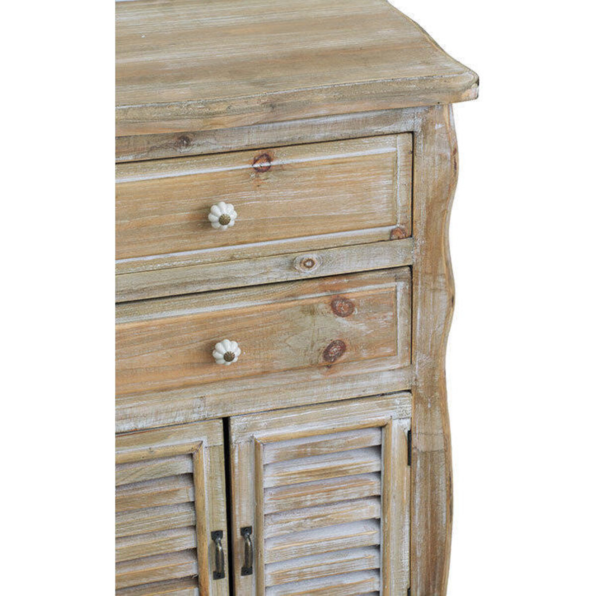 When you need that small little niche where you could display a lamp or some artefact to take away the dullness for the spot, you could use such solid wooden pieces from Lavida. The fir wood made cabinet comes with a shuttered double door lower part which is topped by a two - drawer portion making the cabinet hugely useful. The shabby chic highlights in the form of the distressed wood look, the white wash painted effect, the archaic design that showcases shuttered doors and the gently curved frame like sides. The very Mediterranean feel of the light - coloured wood gives it an elegant look that could fit in as much in the bedroom as it would in the living room. The height at 69 cm and the length at 46 cm with a width of 32 cm makes it also an ideal bedside table where you could place so many of your easy to reach for articles. So be it books, your crochet bag or your box of medication, there is ample space for it to be stored. A wonderful addition to any room, that will bring with it, the touch of the past.
