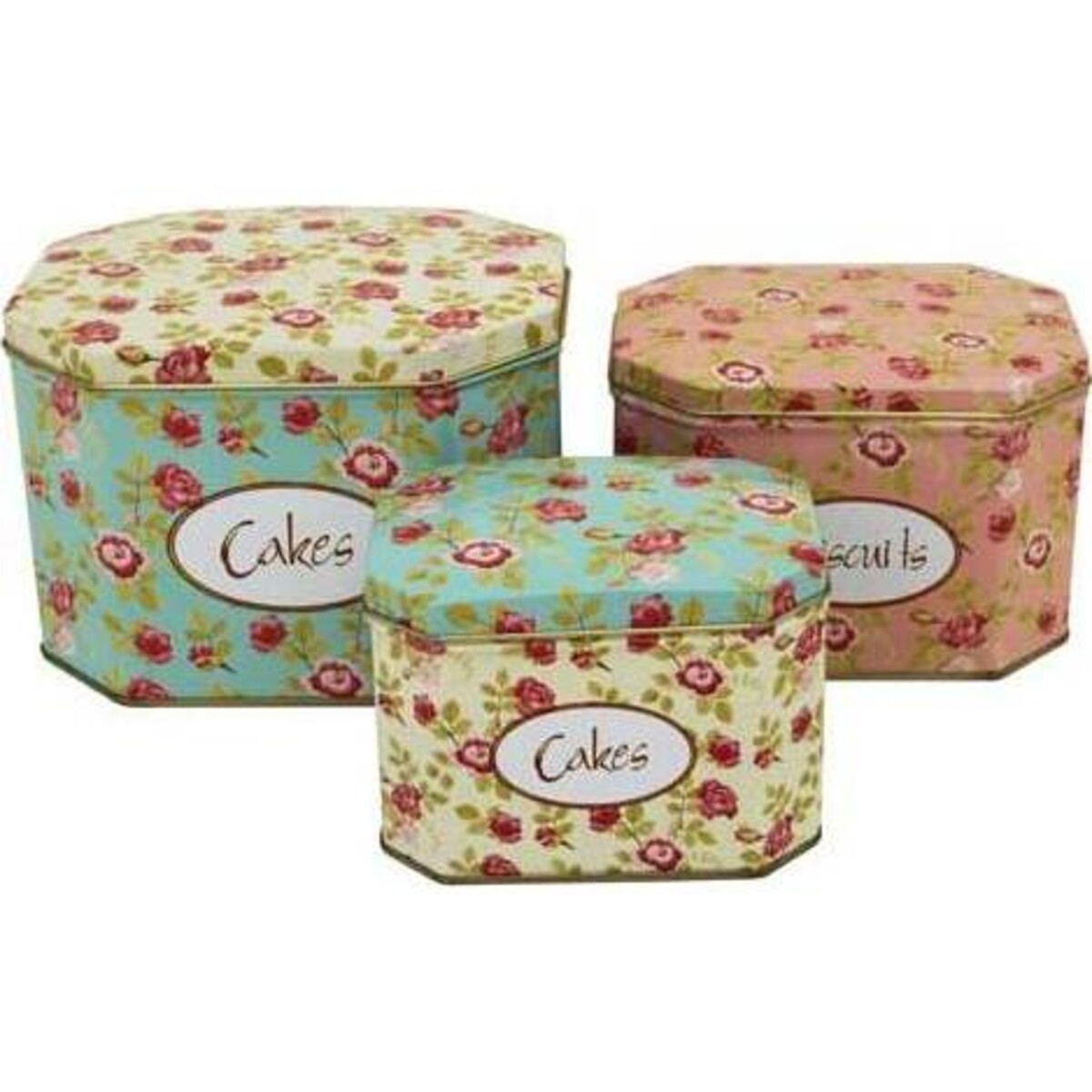Cake Tin Vintage Rose S/3 features a tri - set of colourful vintage tins. The large one measures 16x13x11 cm, medium one 14x11x10 cm and small one 12x8x8 cm. Tin is employed for their construction, which leads to a superb finishing that is resplendent with red rose flowers. One can acquire this set of kitchenware for colleague or friend or obtain them for private domestic usage. The colourfulness which these items exhibit easily betrays the fact that they hold something sweet inside. This sends a gentle allure for one to lift up the lid and uncover the goodies stored within them.