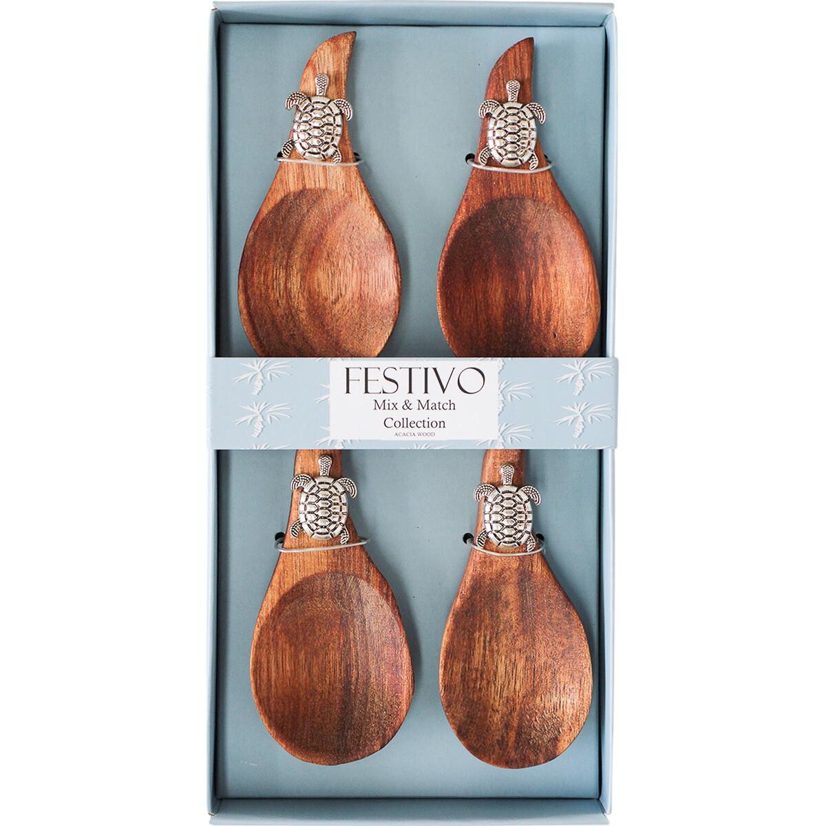 Here’s one of those pieces that just instantly catches the eye when someone’s browsing - it’s got that little bit of extra personality, but it still manages to sit comfortably in a wide range of home or holiday settings. Our Canape Servers Turtle Set of 4 (11x22x3cm) hits all the right notes for customers looking for a memorable gift. Acacia wood brings a beautiful warmth and durability to the design, and the metal turtle motif is detailed enough to feel really special without overdoing it. And that blend of materials just adds weight, literally and visually.