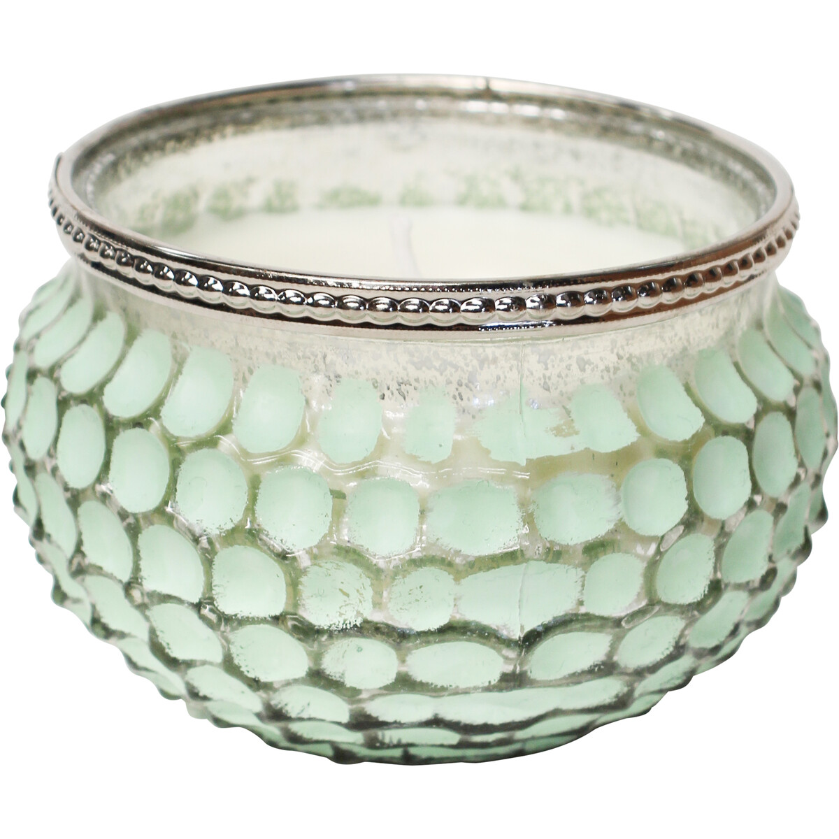 Delight in the warmth of candles- and in this case it comes in dimpled patterned glass votive that has bene crafted with care. The little round shaped votive looks simple enough but when lit up from the inside, you will be able to see its lovely textured pattern all the more comes in this delicate spearmint colour that looks soft and neutral. It helps highlight the pattern on the glass exterior. Will look especially pleasing on low coffee tables-maybe used in clusters or in singles dotting the dull spaces where you wish to infuse some warmth and interest. Conversations definitely feel more heart-warming and intimate when you are in the warm and soothing light form such votives.