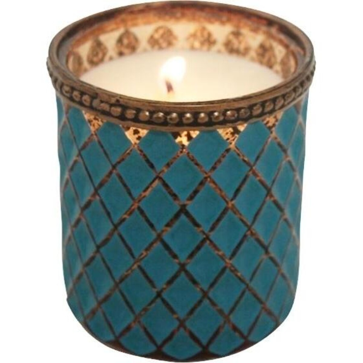 Adding the right kind of illumination can take your décor to quite another level of beauty. Impact it with the presence of this hand-poured wax candle that comes encased in a beautiful glass votive in a generous size. About 9 cm tall and 8 cm in diameter, the votive is golden yellow from the inside as is evident when you see the lit-up glass and the outer colour too is brilliant turquoise, so vibrant and eye catching. It is this artisanal quality in hand made votives that makes Lavida?s mood lighting option so very special You could place this candle on the console, or on the corner table or better still to create a centrepiece for the dining table. The wick has a slow burn time as does the wax and should see you through many hours of fabulous evening hours relaxing and luxuriating in its mellow glow. The votive could be put to sue even after the wax has bene consumed and can go on to hold a tealight or a small sized candle - or as you may desire. Comes with a metal rim that adds that touch of glitter to its body.