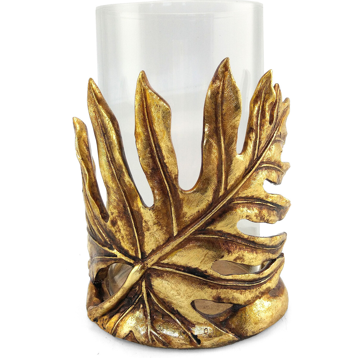 Show-off exciting décor style with Candle Holder Gold Leaf. Create a romantic atmosphere on the front porch, backyard patio, or outdoor garden with this glam. This candle holder isn't all about its aesthetic appeals; it holds a candle in place to prevents flame-burning candles from posits fire hazards when left unattended. Plus, it deters melting wax dripping all over surfaces. Amplify a metallic touch to your interior. It will look terrific on the coffee table, countertops or console and see its magnificence play out. Candle Holder Gold Leaf helps enhance the charm and glamour in one's living space.