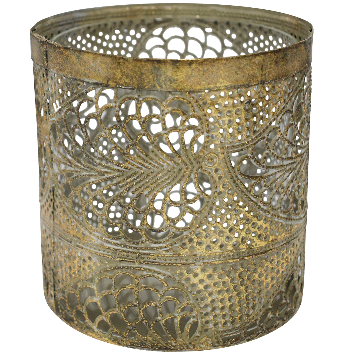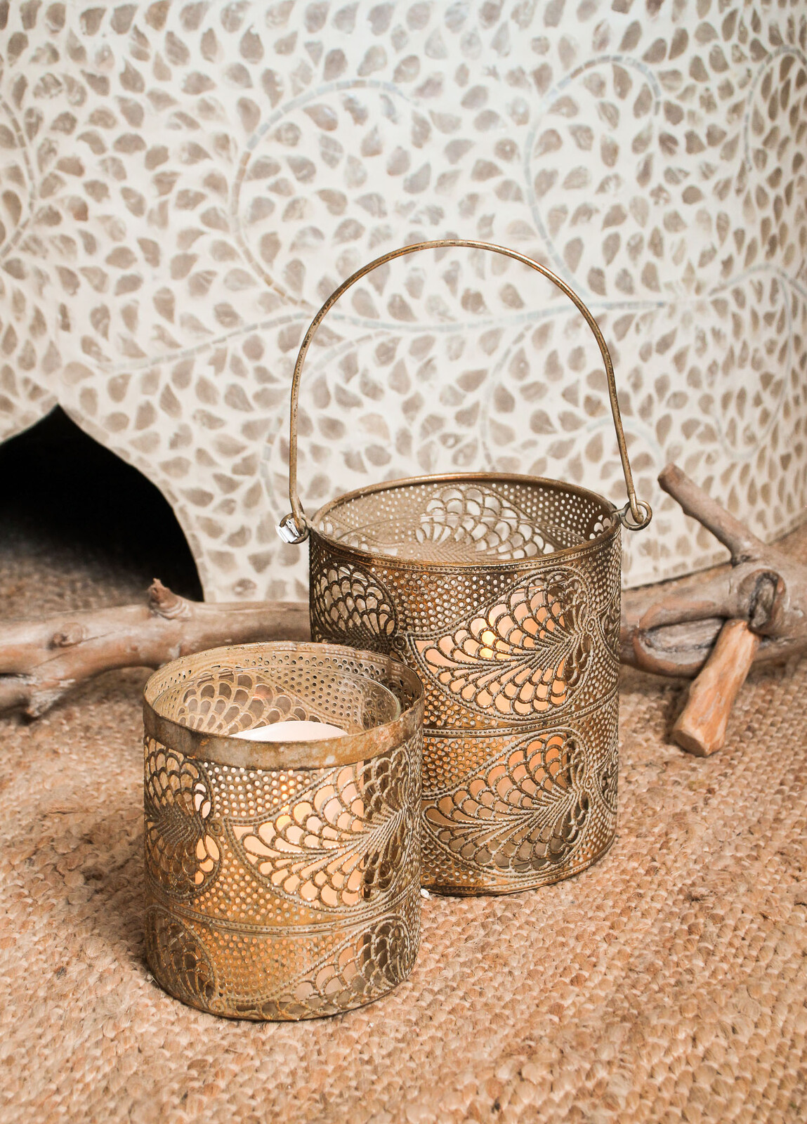 Standing tall but at a moderate height which measures 13 centimetres, this Candle Holder Leaf Sml is made in a cylindrical shaped dimension which measures 12 centimetres in both its length and in its width. Having a larger size which is equally in stock at the moment, this candle holder was crafted for customers seeking to upgrade their candle lighting experience without having to spend a fortune or use up precious space. It is made through the use of high quality metal material which has its body ornamented in leaf shaped designs and comes with a glass insert within which candles can be placed.