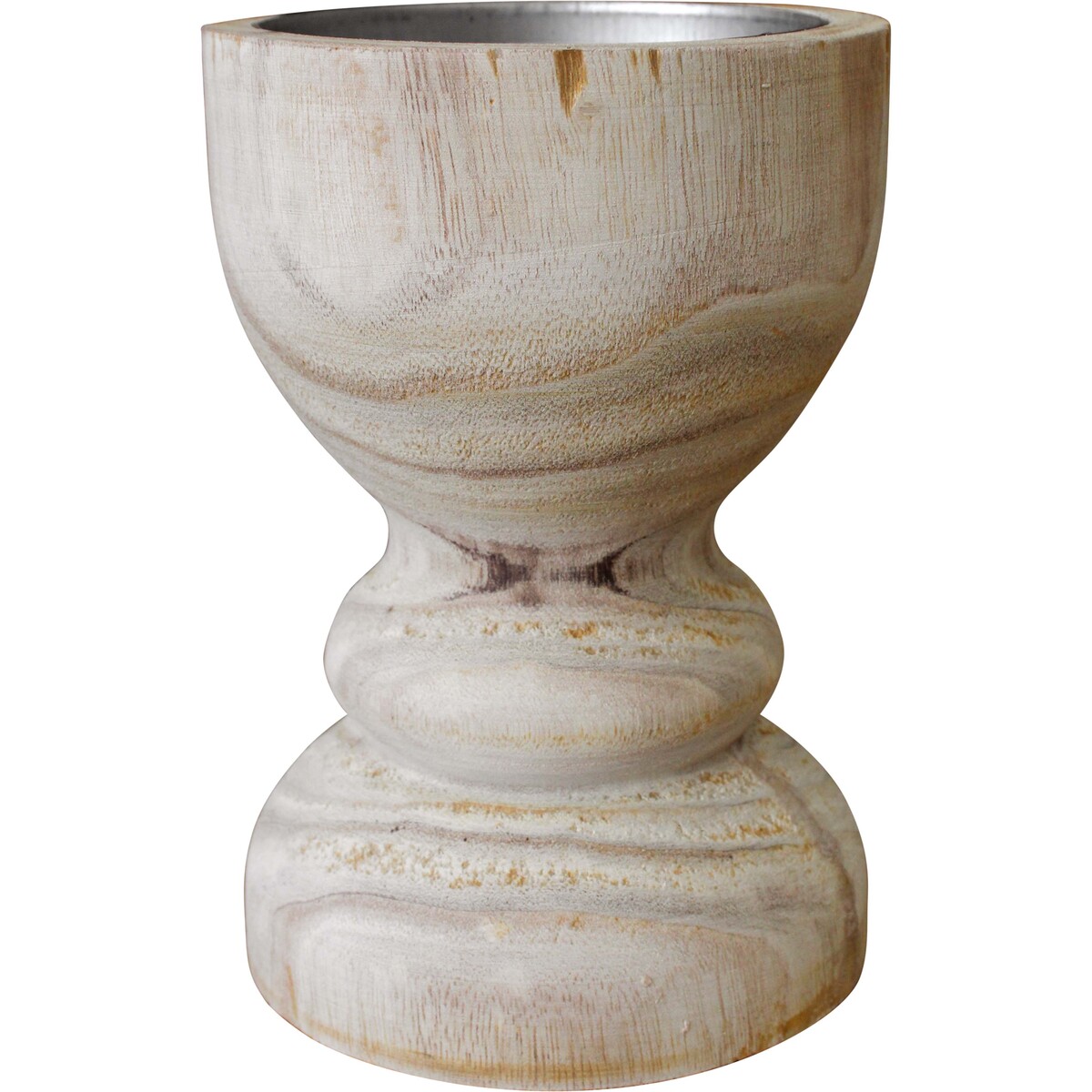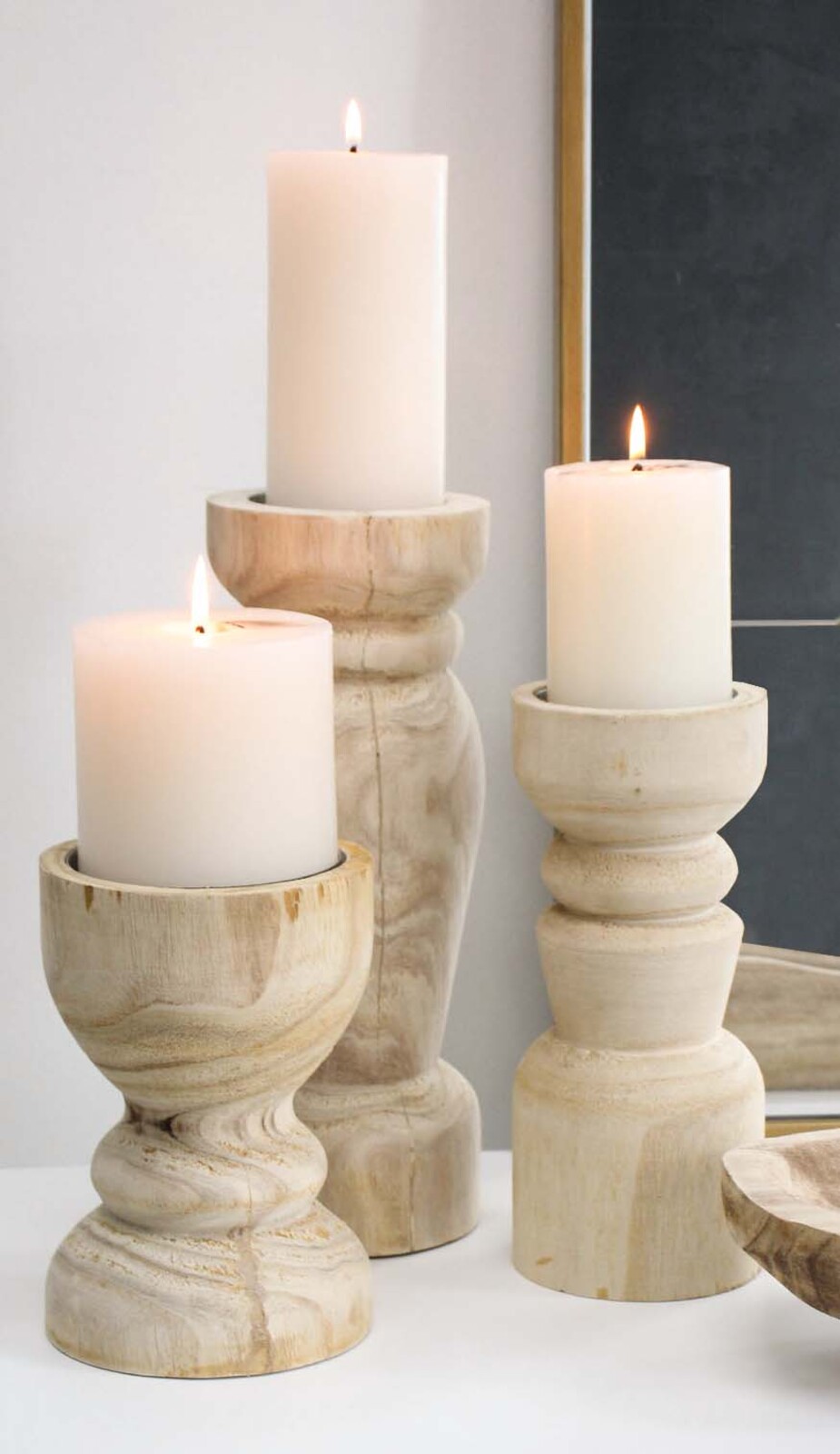 About 18 cm in height and 12.5 cm in diameter allows you to make use of your favourite pillar candle which will fit in well into the cup like receptacle of the holder. The stand itself will balance a medium sized candle rather well. Make a great display with flowers and fruits or shells and stones for more beauty and style. Get your home festive and celebration ready with the detail such candle holders and the lighting they make possible. The wood has been hand-hewn to its smooth shape and since there is usage of only the natural colour of paulownia, its make it possible to contrast other shades and vibrant colours with its more neutral tones. Will look fabulous when used as a centerpiece or a welcome arrangement on the console.