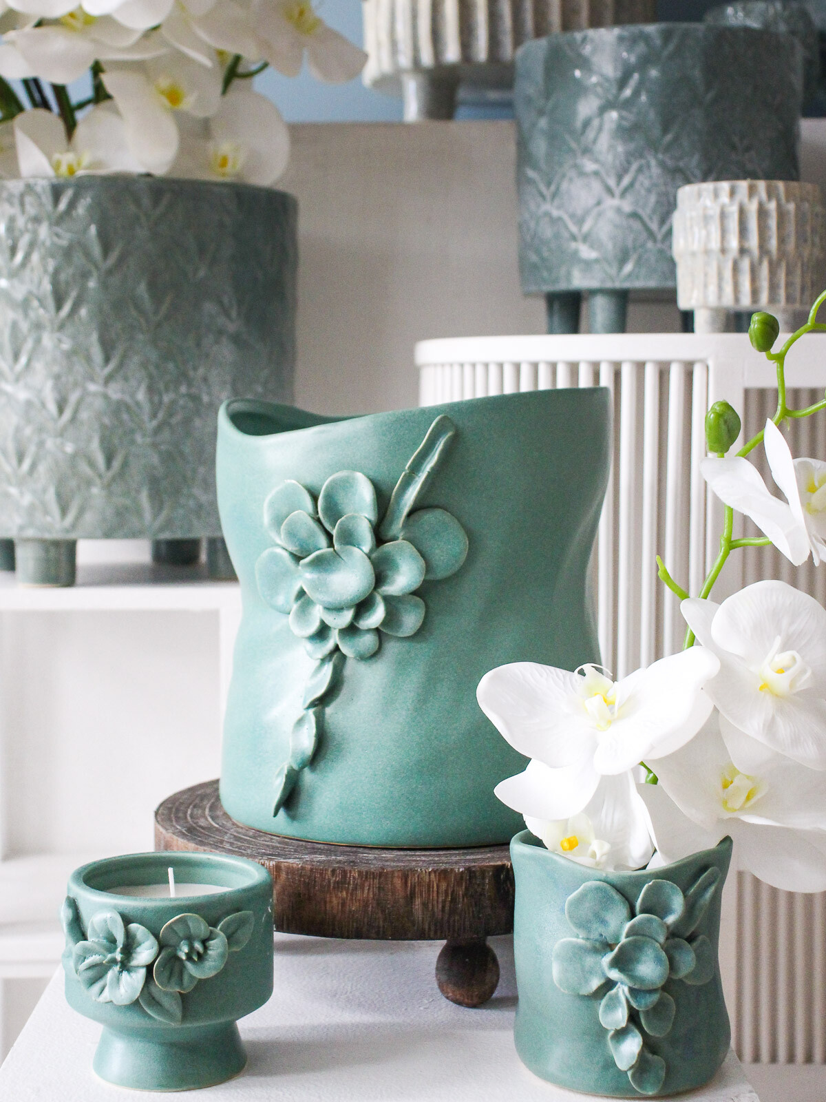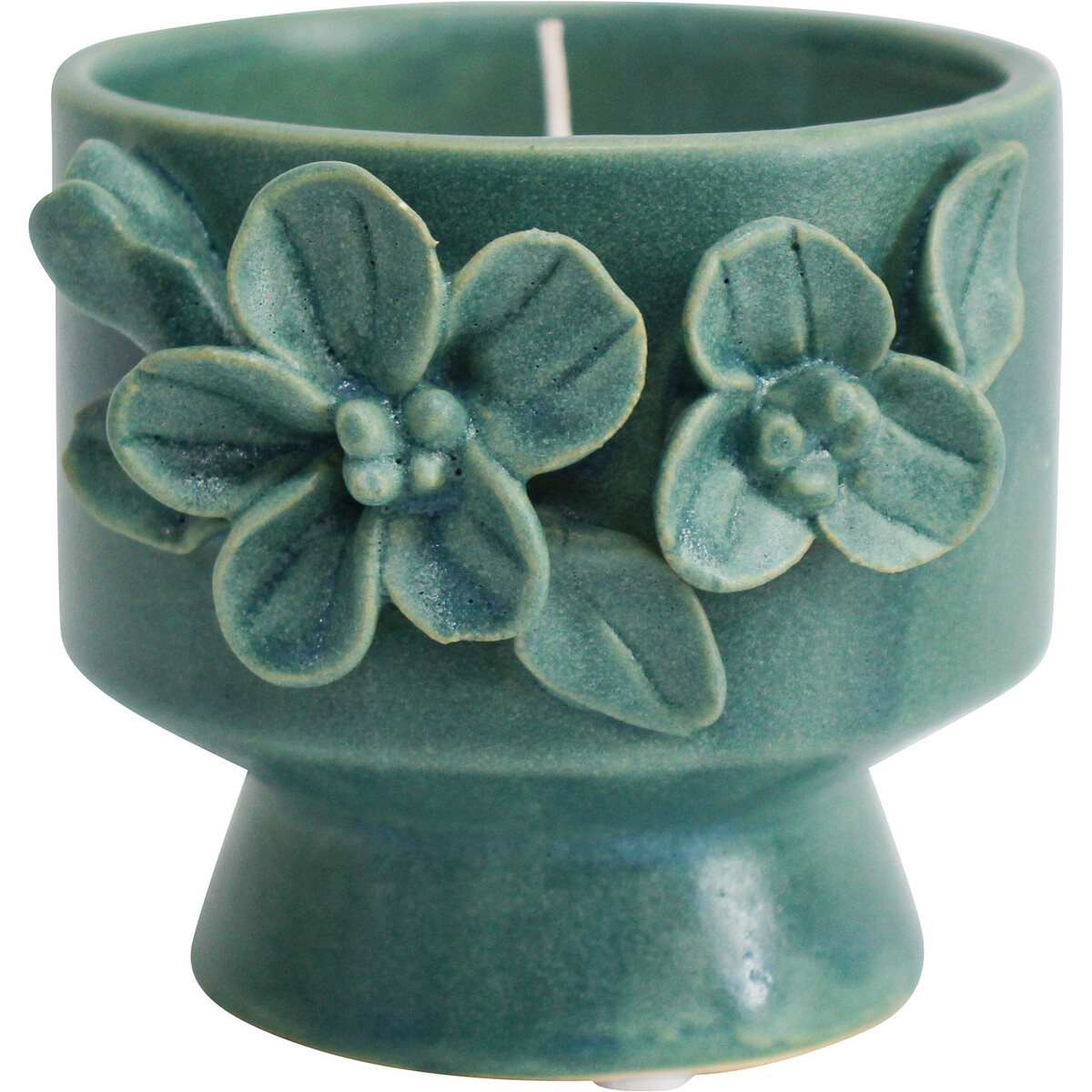 Filled with fine quality wax, that has been handpicked. The wick stands clean off the waxy base making the little flame burn and light up the space with a steady kind of glow. The colour of the ceramic made candle adds to its beauty as does the tiny little flowers that adorns its exterior. Will sit atop tables, shelves and your bedside rendering it more pleasing, charming and more relaxing. The candle wax lights up well, gives a steady flame and will allow ample burn time that should see one through several evenings. Little inclusion in the décor such as this go a long way in ensuring a refined and elegant look for the space.