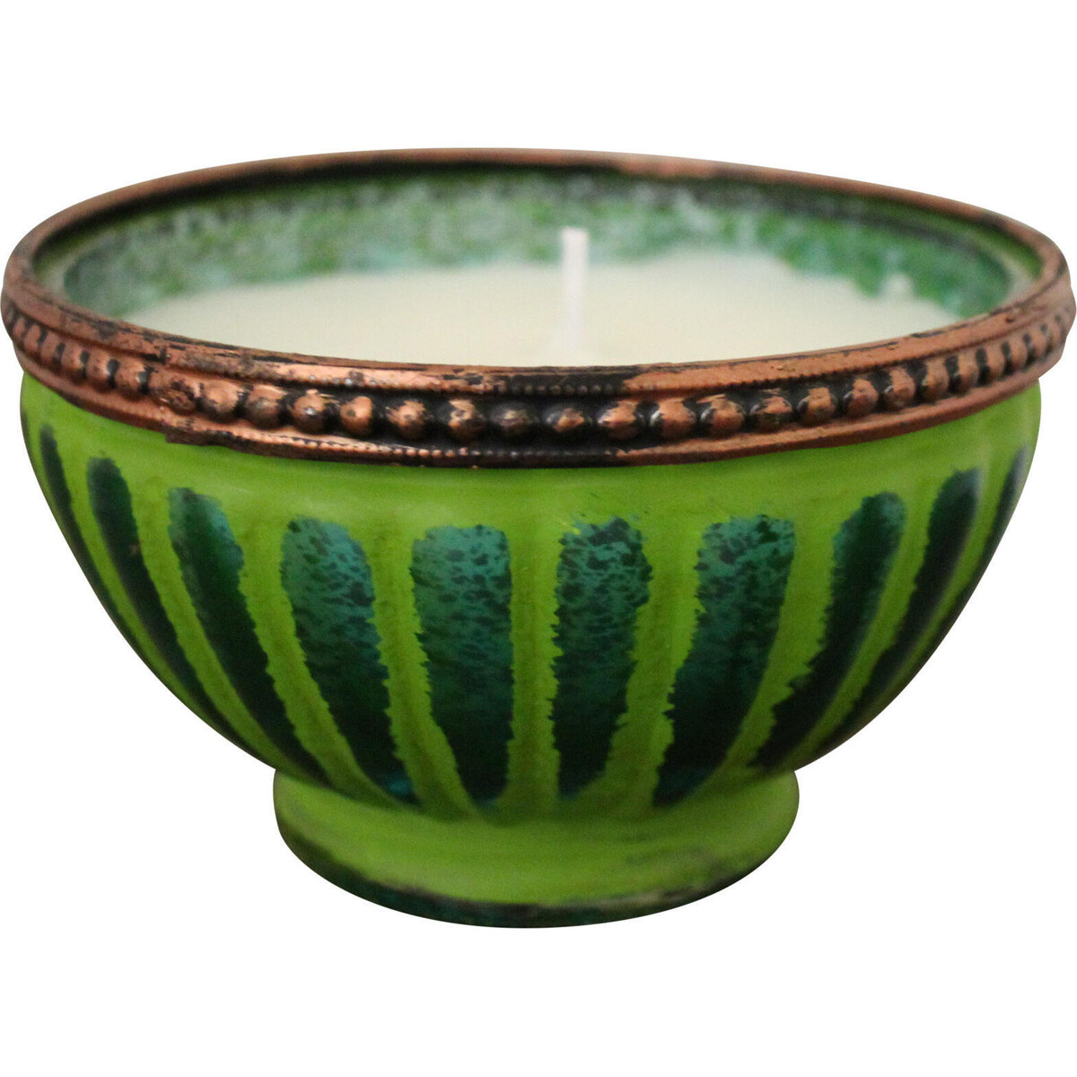 Bring alive the mid-eastern flavour in your interiors with the inclusion of such utterly adorable votives on offer from Lavida. Here is one that has been created from sturdy glass, the height of which is a mere 6 cm while is diameter is 10 cm. Large and curved -it will look decidedly very traditional in its look due to the Quatrefoil pattern and the specks of gold and rust that adds to its design. Has a small round base with deep ribbings on the body that is made attractive further with the presence of green colour. You could bring in that mid-eastern flair in your d?©cor, or simply use more such votives to give your spaces that alternate lighting option. The glass used is sturdy and will be able to with stand the high temperatures that candle flames will expose it to. Will hold a small tealight in its round receptacle. Will come filled with wax and once that is consumed could easily hold a small tealight as a filler.