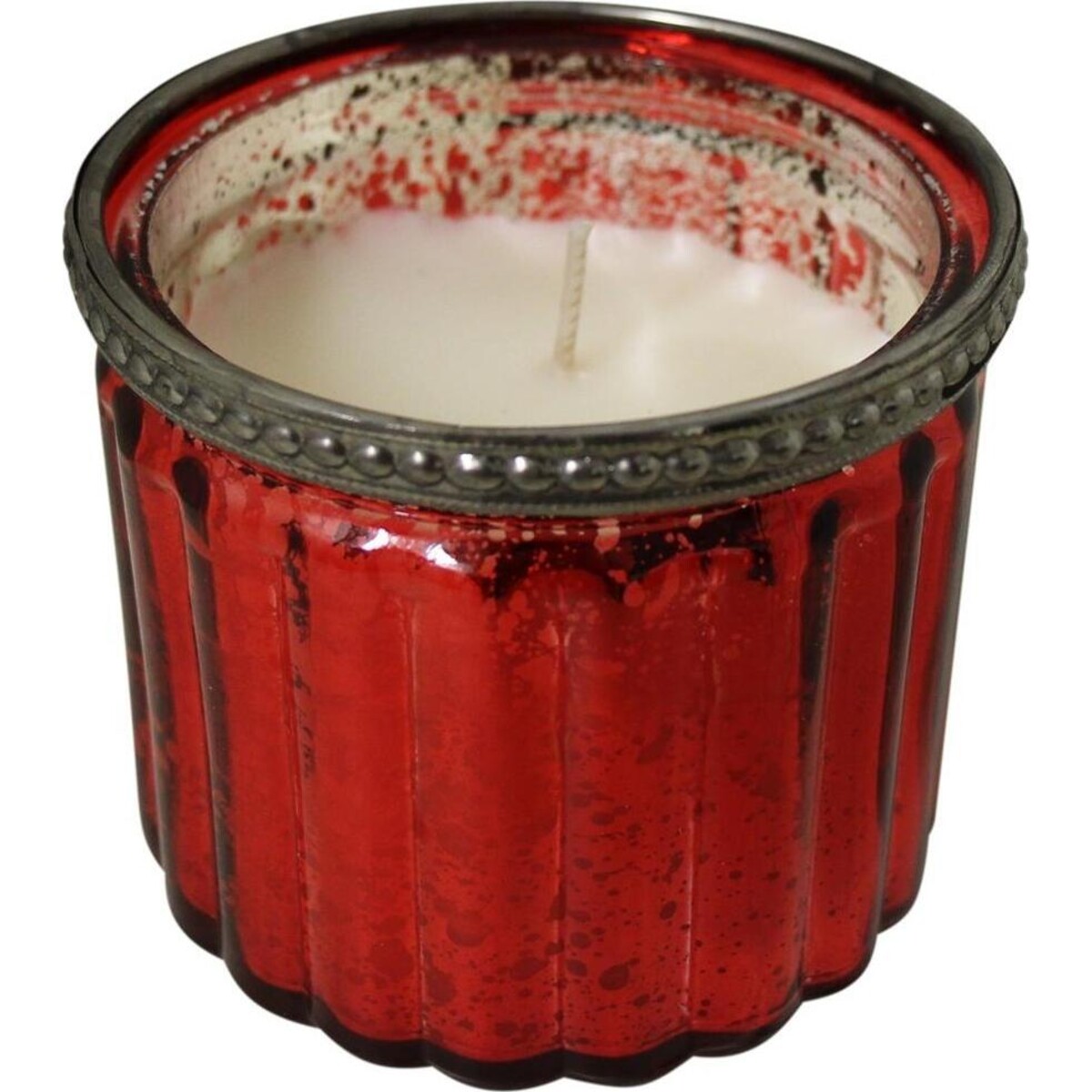 This ruby coloured holder with a candle is the perfect accessory for creating soft, ambient lighting in any space and features a vertical ribbed line design. The patterned exterior with antique silver beaded rim creates a stunning look and the impact of its design becomes all the more dramatic especially when the candle inside the jar is lit.