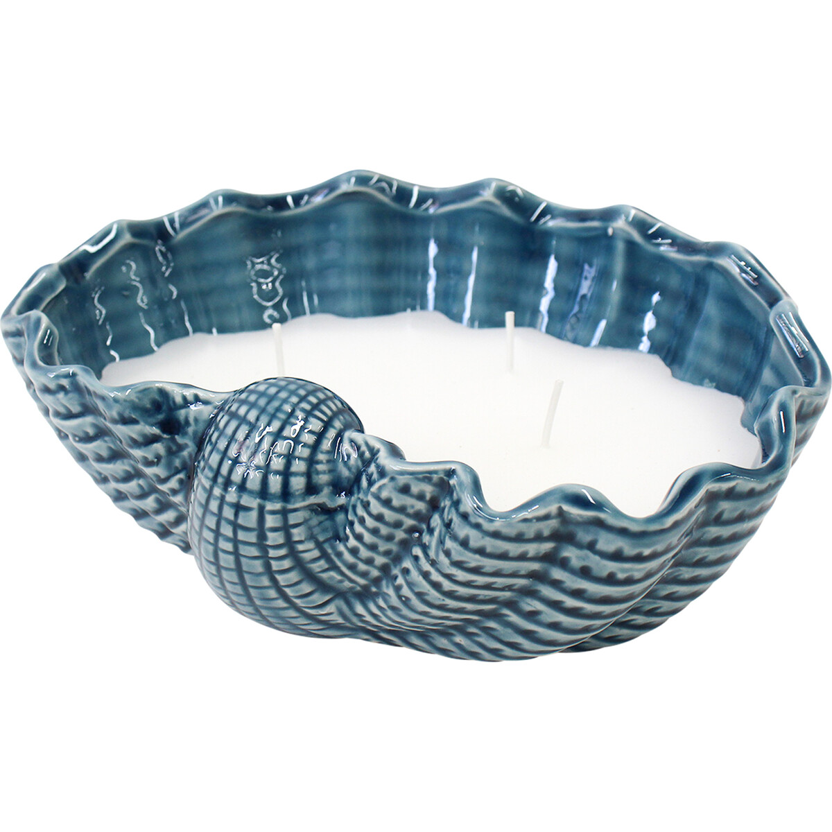 The Candle Shell Blue Large features a large ceramic candle holder which is cleverly crafted in the shape and semblance of the shells of sea crustaceans. This shell-like shape gives it a beach themed appearance which is why we have decided to categorise it under our gorgeous array of Wholesale Beachside home and gift wares. It is moulded and formed into a 21 centimetres long, 16 centimetres wide shell shape with its hollow space filled with premium quality wax into which three long burning wicks are inserted.